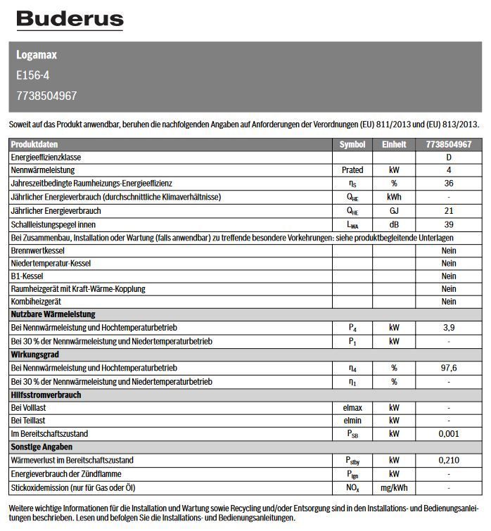 Buderus Buderus Elektro Heizgerät Logamax E156 4 kW Elektroheizung Zusatzheizung Booster