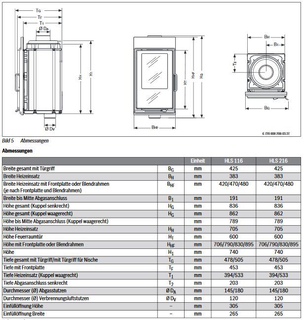 Buderus Buderus Heizeinsatz HLS216 8 kW Kachelofeneinsatz Kamineinsatz Kuppel links