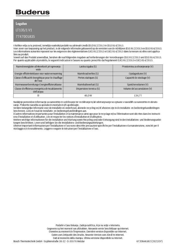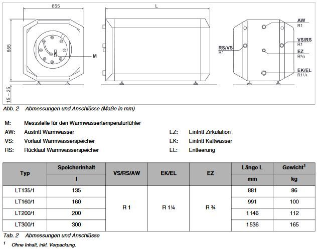 Buderus Buderus Logalux LT135/1 V1 Trinkwasserspeicher Warmwasserspeicher liegend