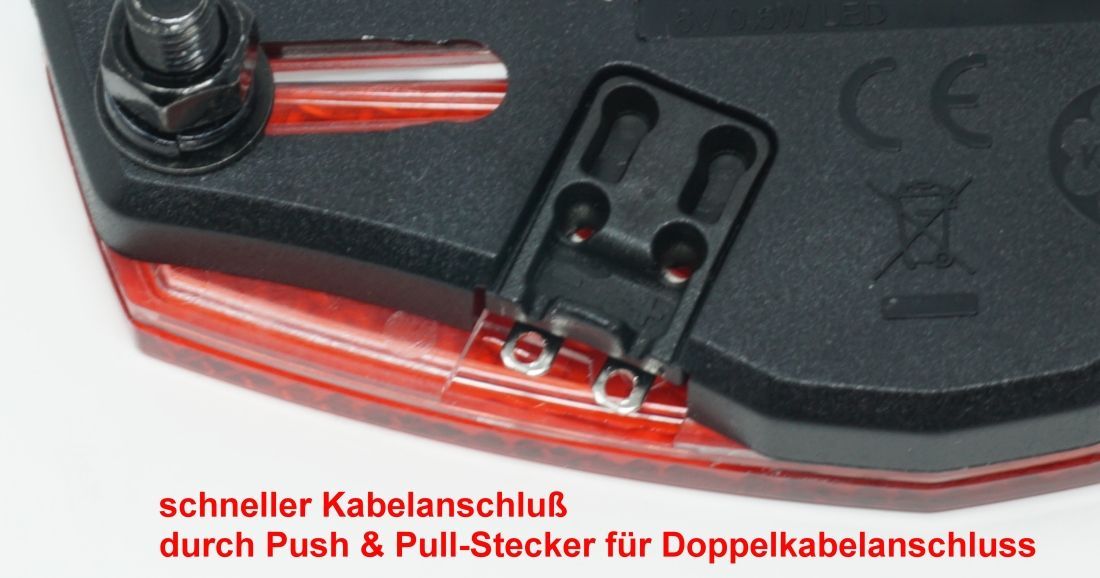 • e-Bike Rücklicht für Gepäckträger 6-58V Montageweite 50/80 mm An/Aus über e-Bike