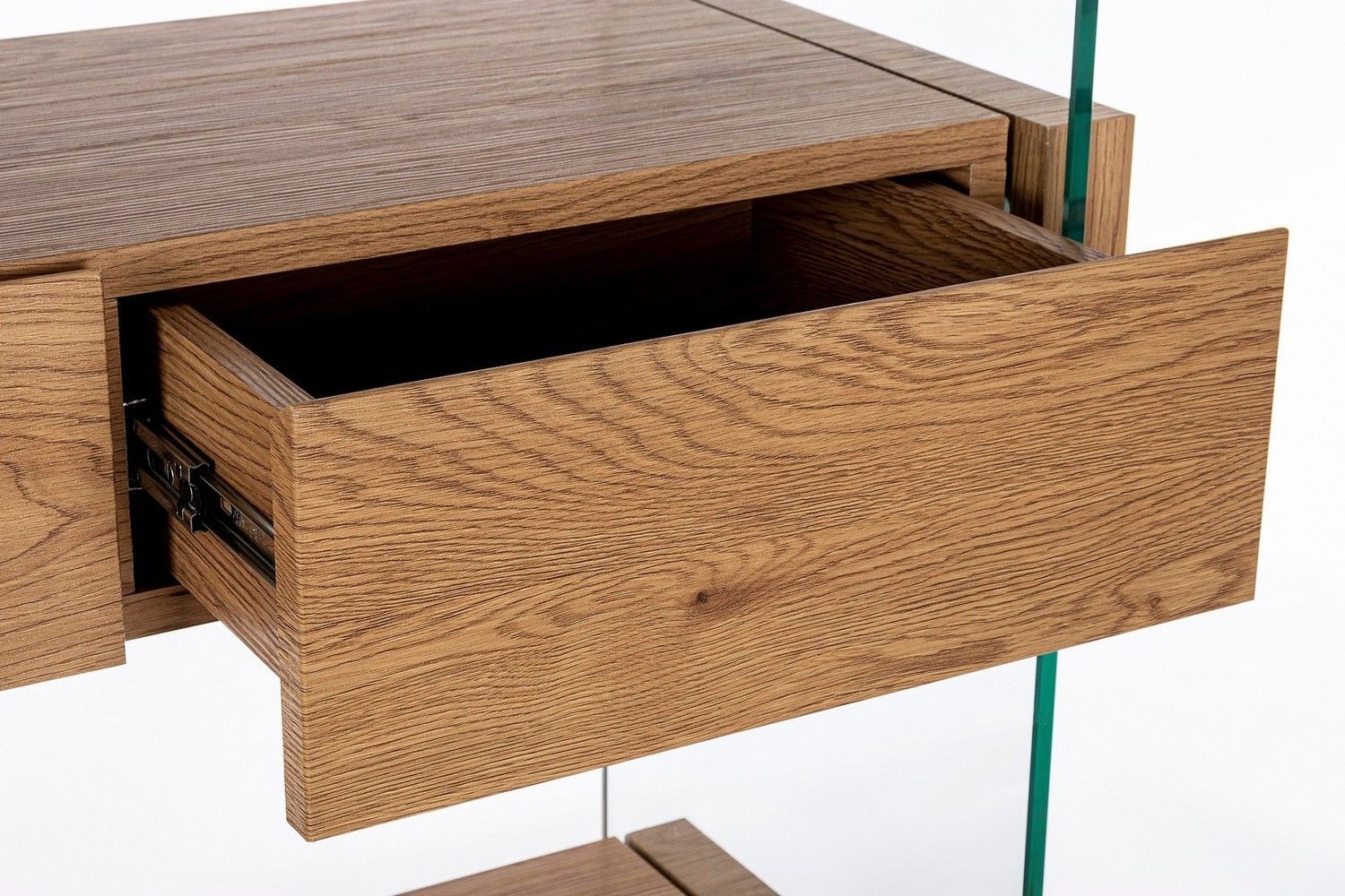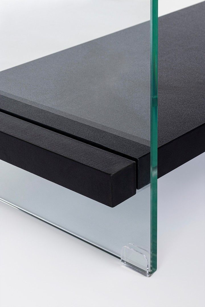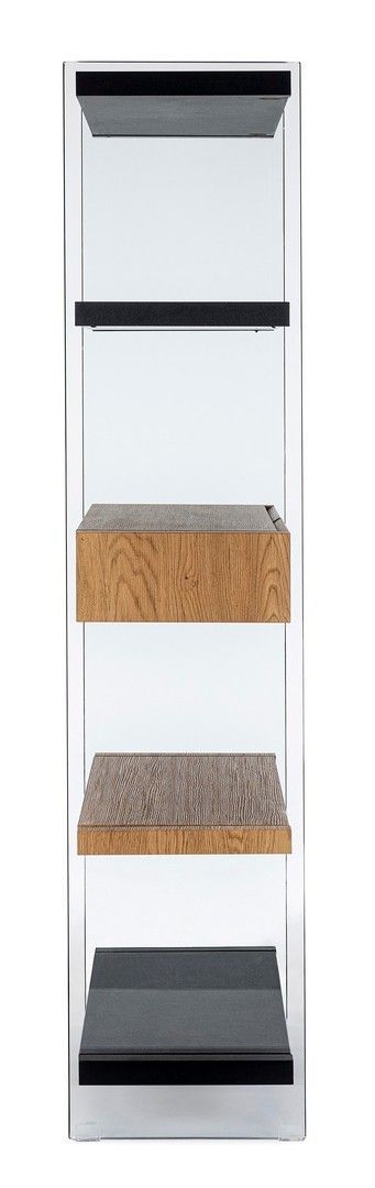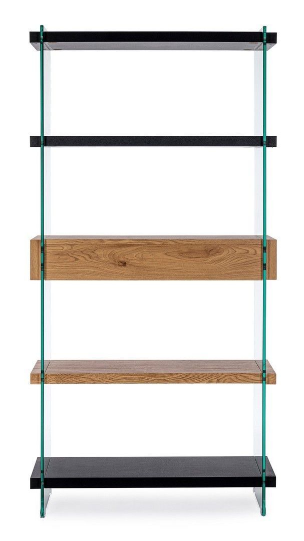 Bücherregal 90x39x180cm aus Glas und MDF in Holzoptik und schwarz mit Schubladen