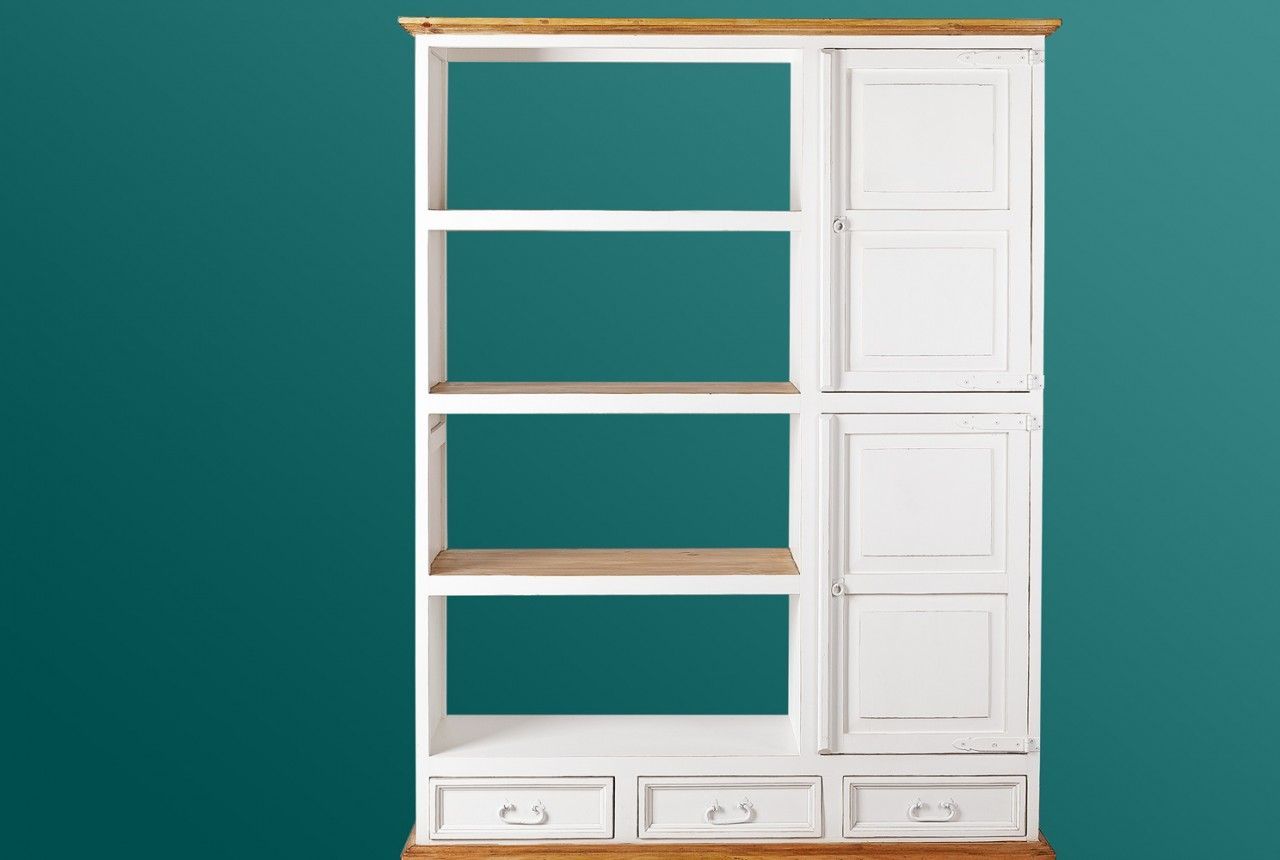 Bücherregal Bücherschrank Raumteiler MEXICO Weiß - Landhausstil - Pinie Massivholz