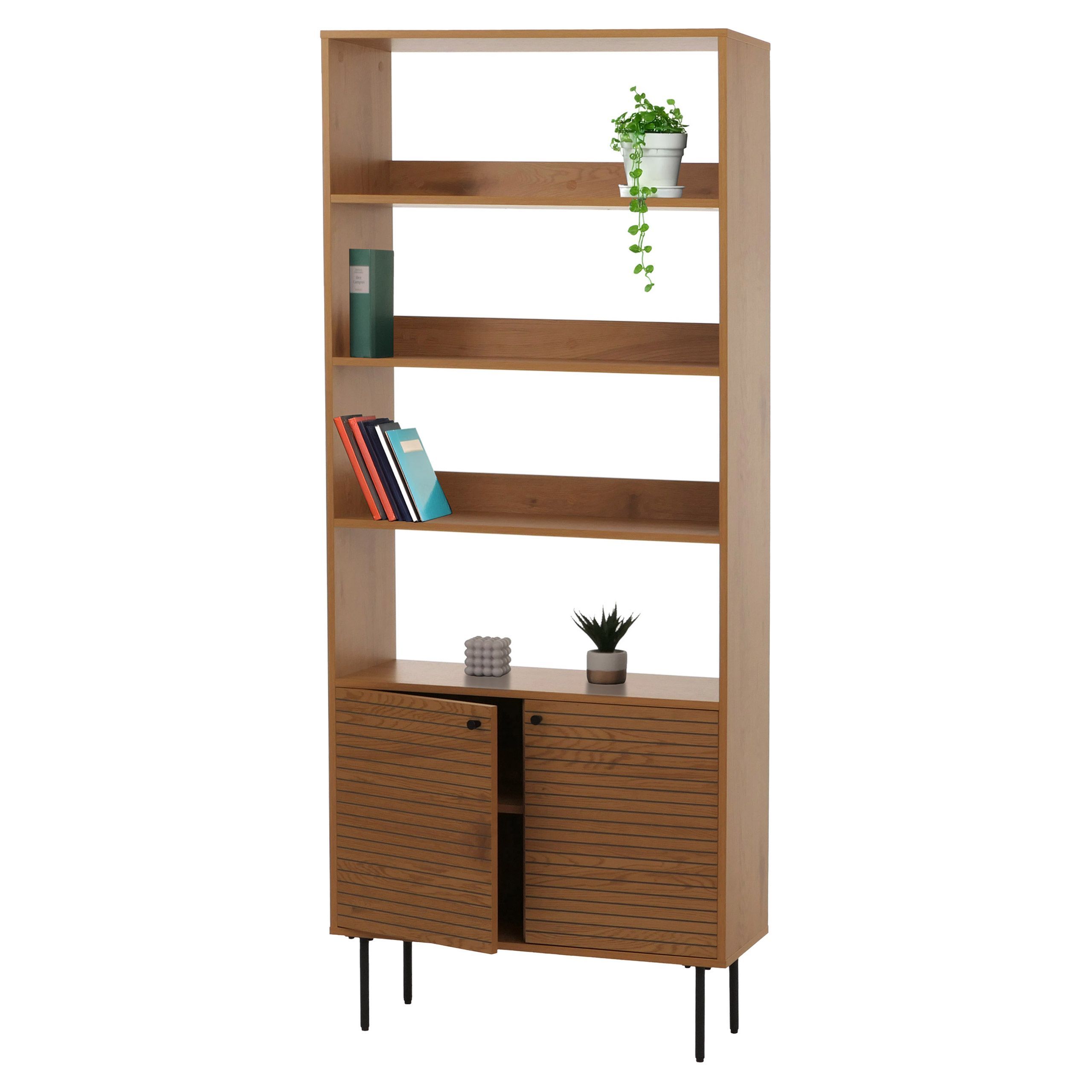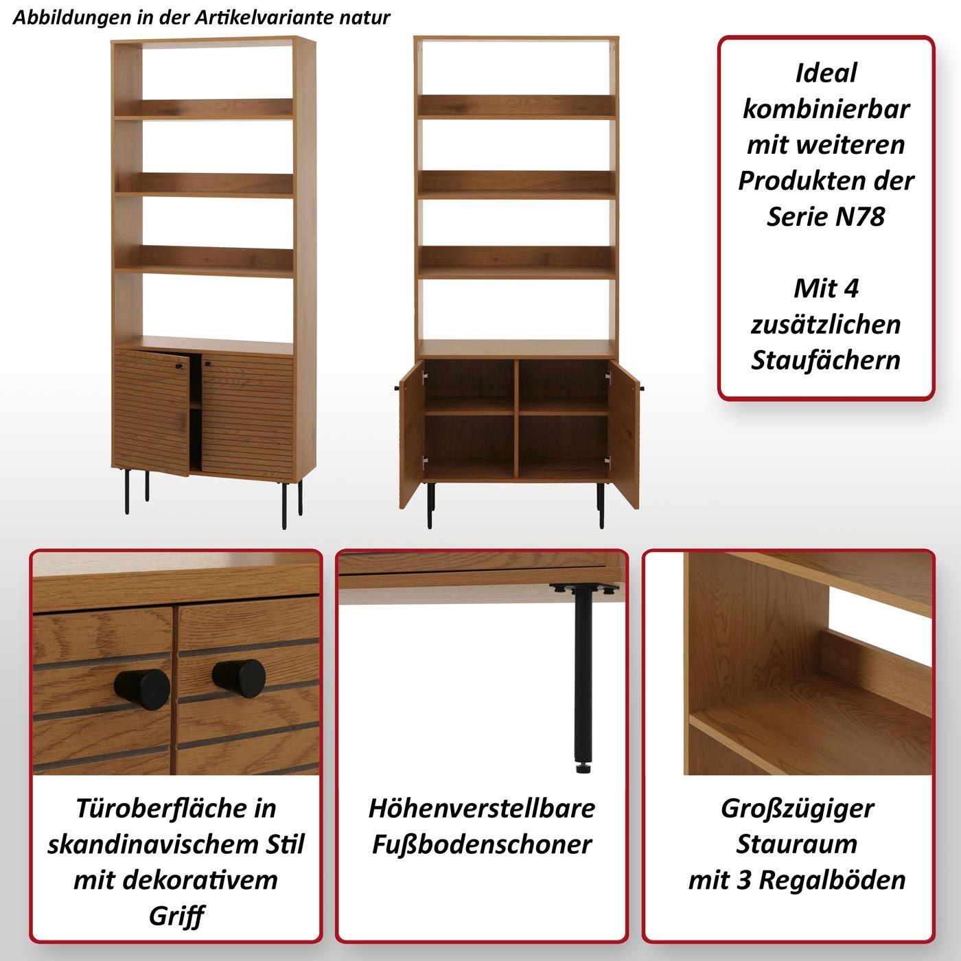 Mendler Bücherregal HWC-N78, Bücherschrank, skandinavischer Stil Metall Holz Melamin MVG