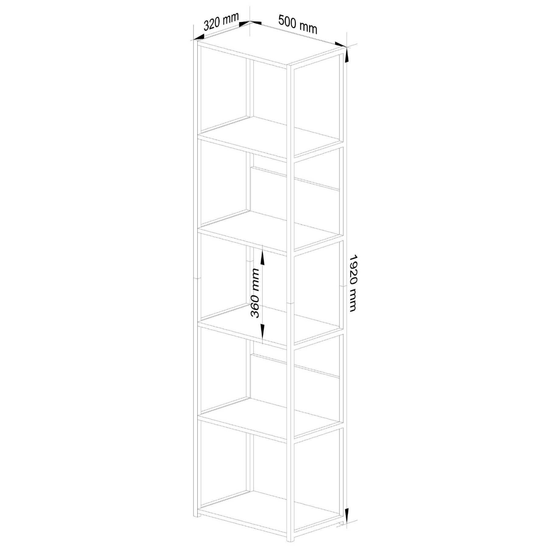 Bücherregal mit 6 Ablagen 40/50 cm Industrial Skelettbauweise Standregal Metall