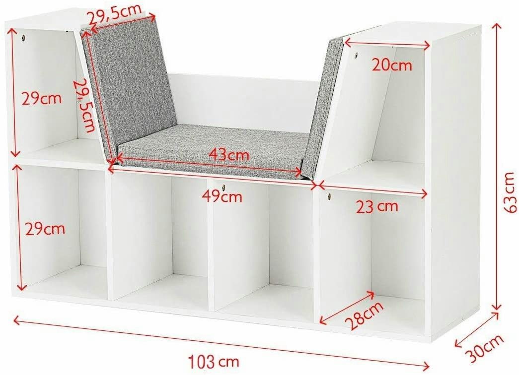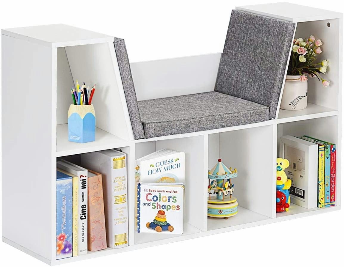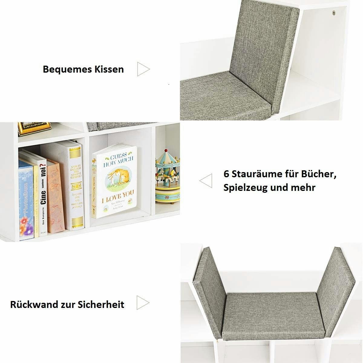 Bücherregal mit Kissen, Raumteiler Bücherschrank 6 Fächer, Würfelregal Aktenregal