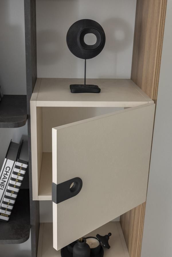 Bücherregal Modern Offene Fächer Türen Holzoptik Creme Stilvolles Design Möbel