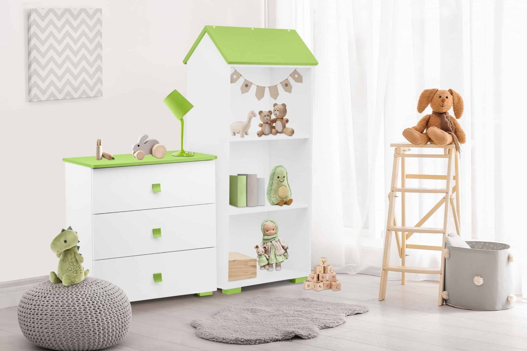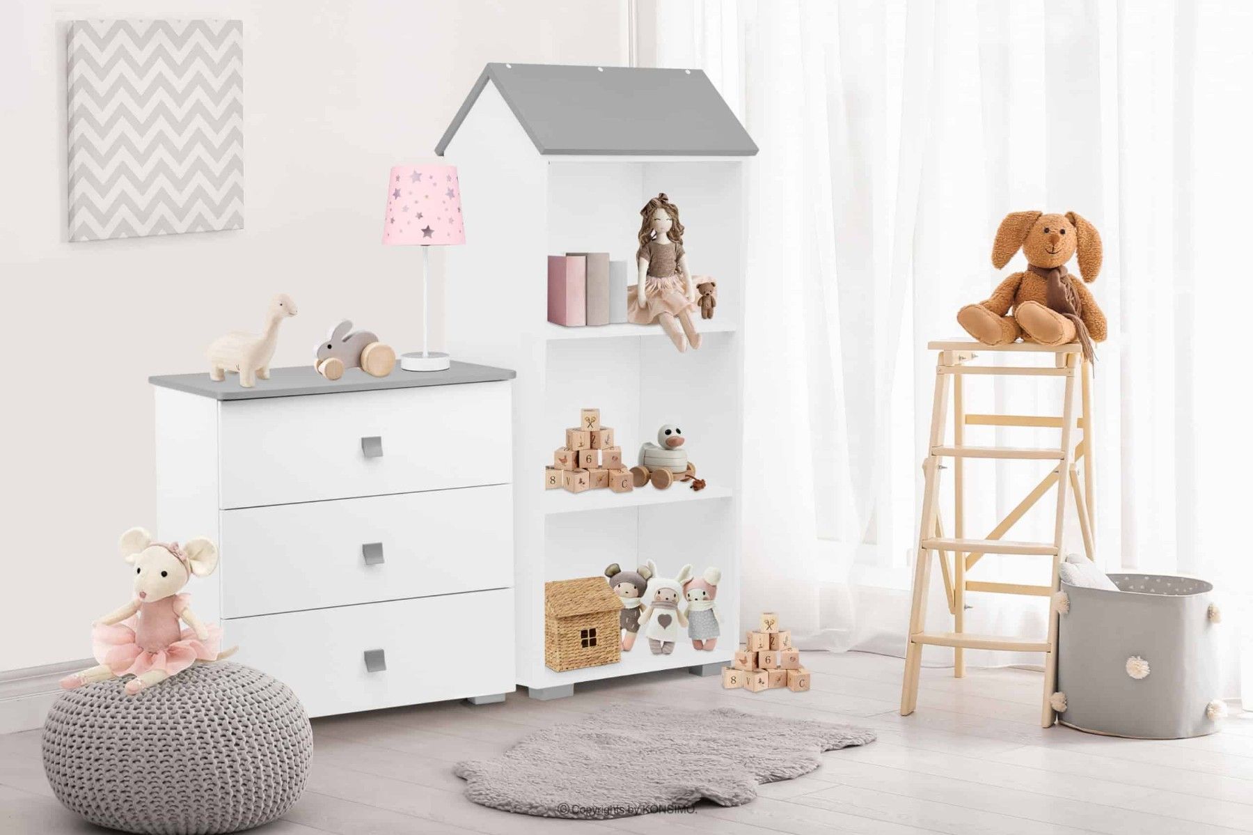 Bücherregal zu Kinderzimmer in Farbe weiß / grau aus der Kollektion PABIS Konsimo