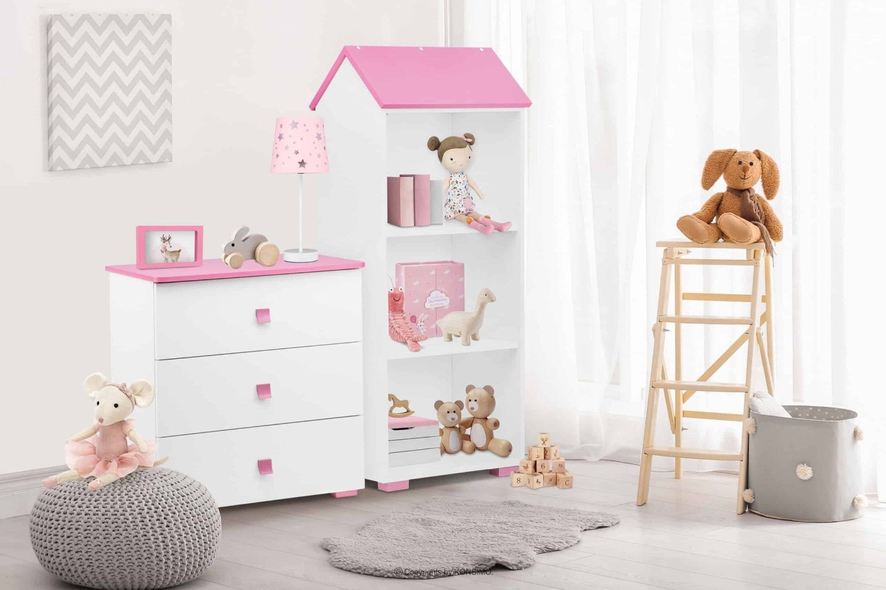 Ein Bett zu Kinderzimmer in Farbe weiß / rosa aus der Kollektion PABIS Konsimo