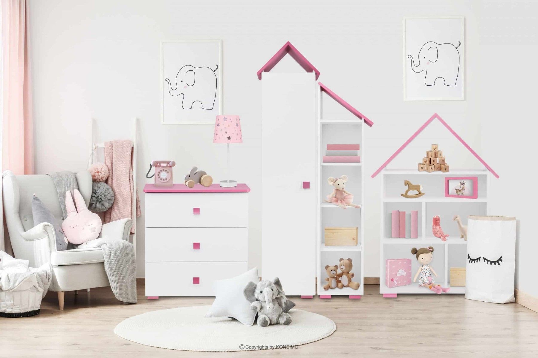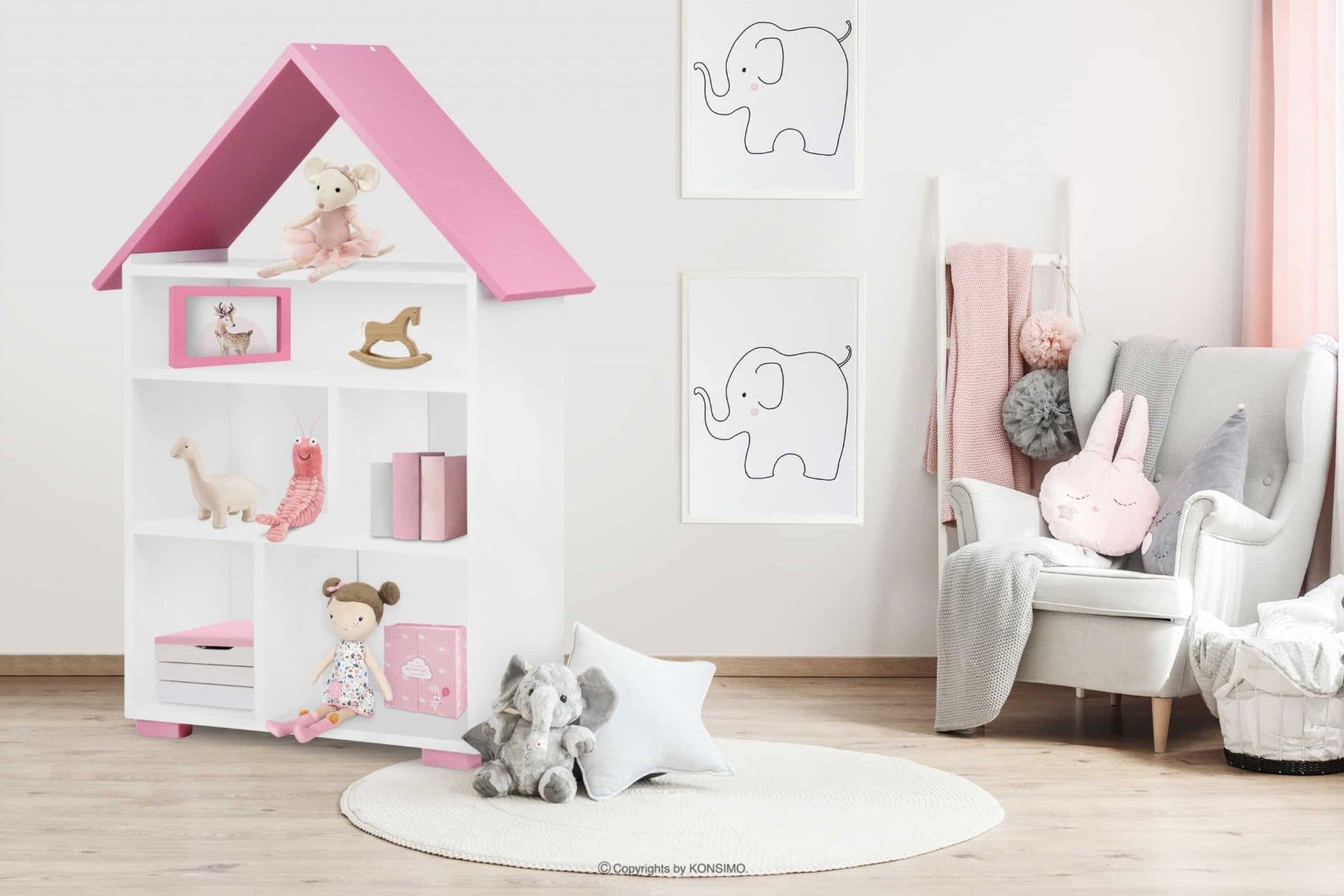Bücherregal zu Kinderzimmer in Farbe weiß / rosa aus der Kollektion PABIS Konsimo