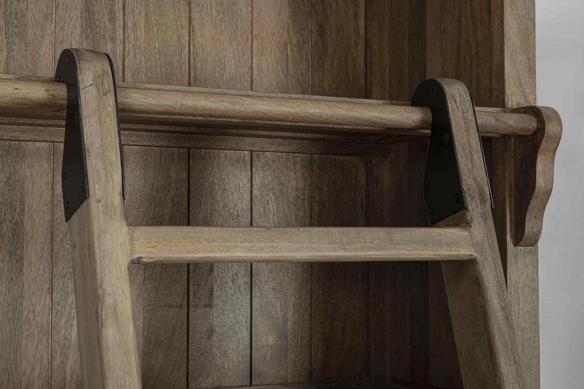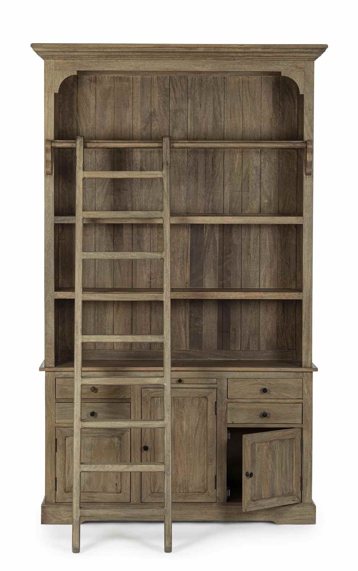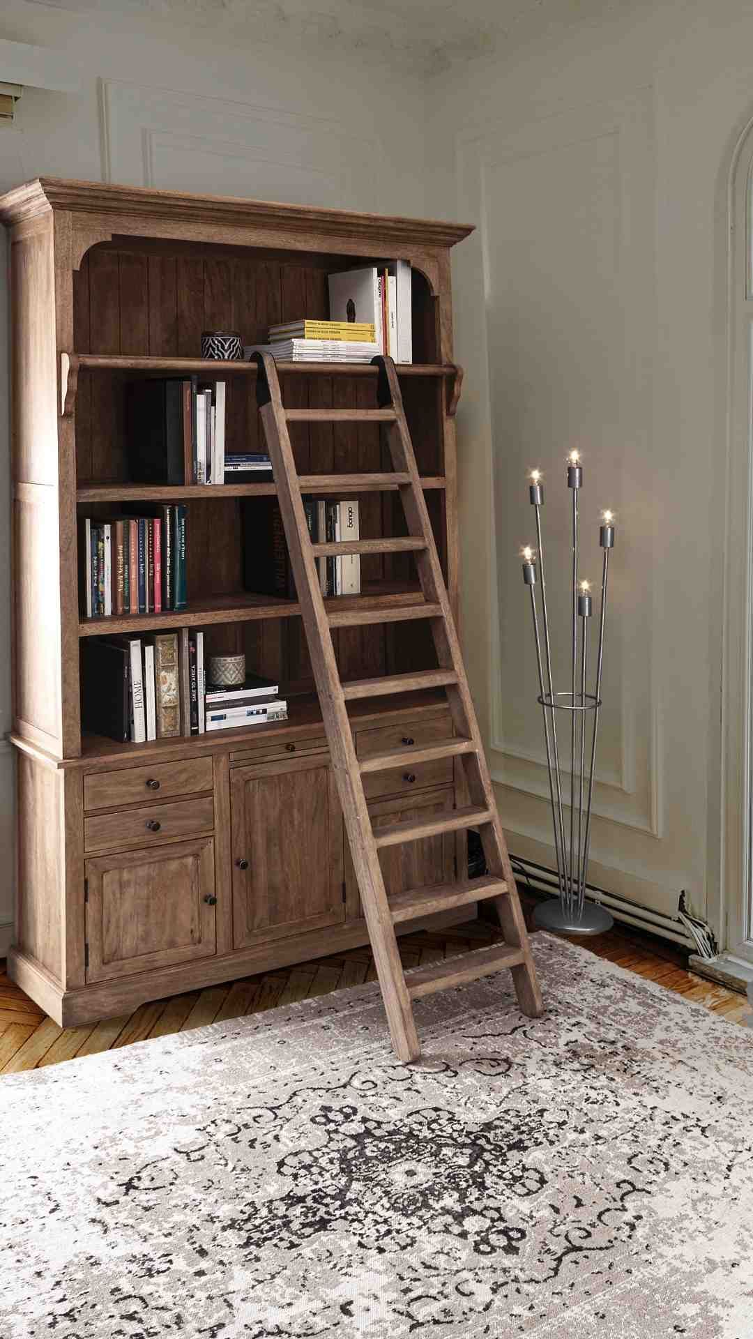 Bücherschrank Domitille aus Mangoholz, Landhausstil, natur, inklusive Leiter und Schu