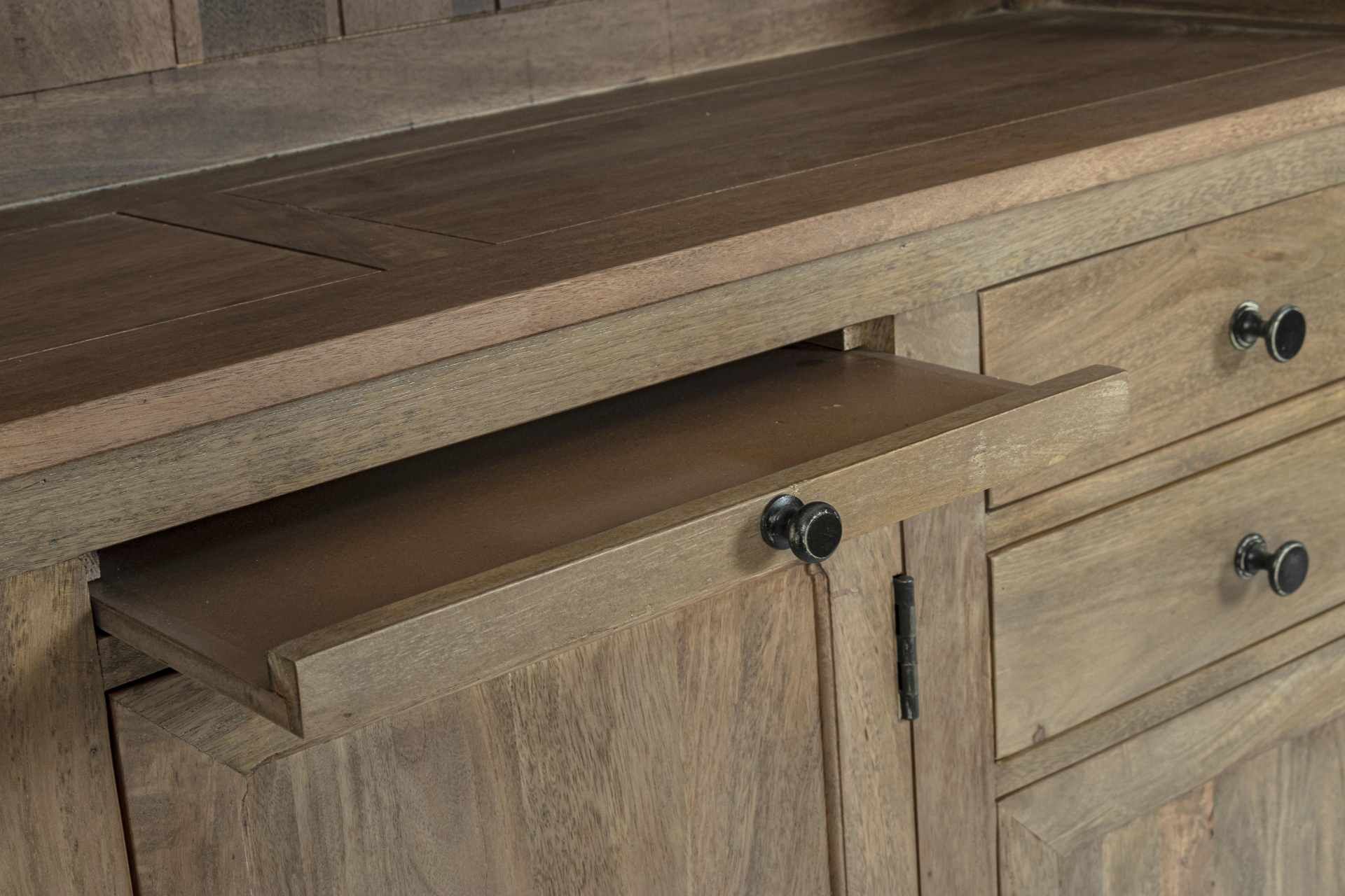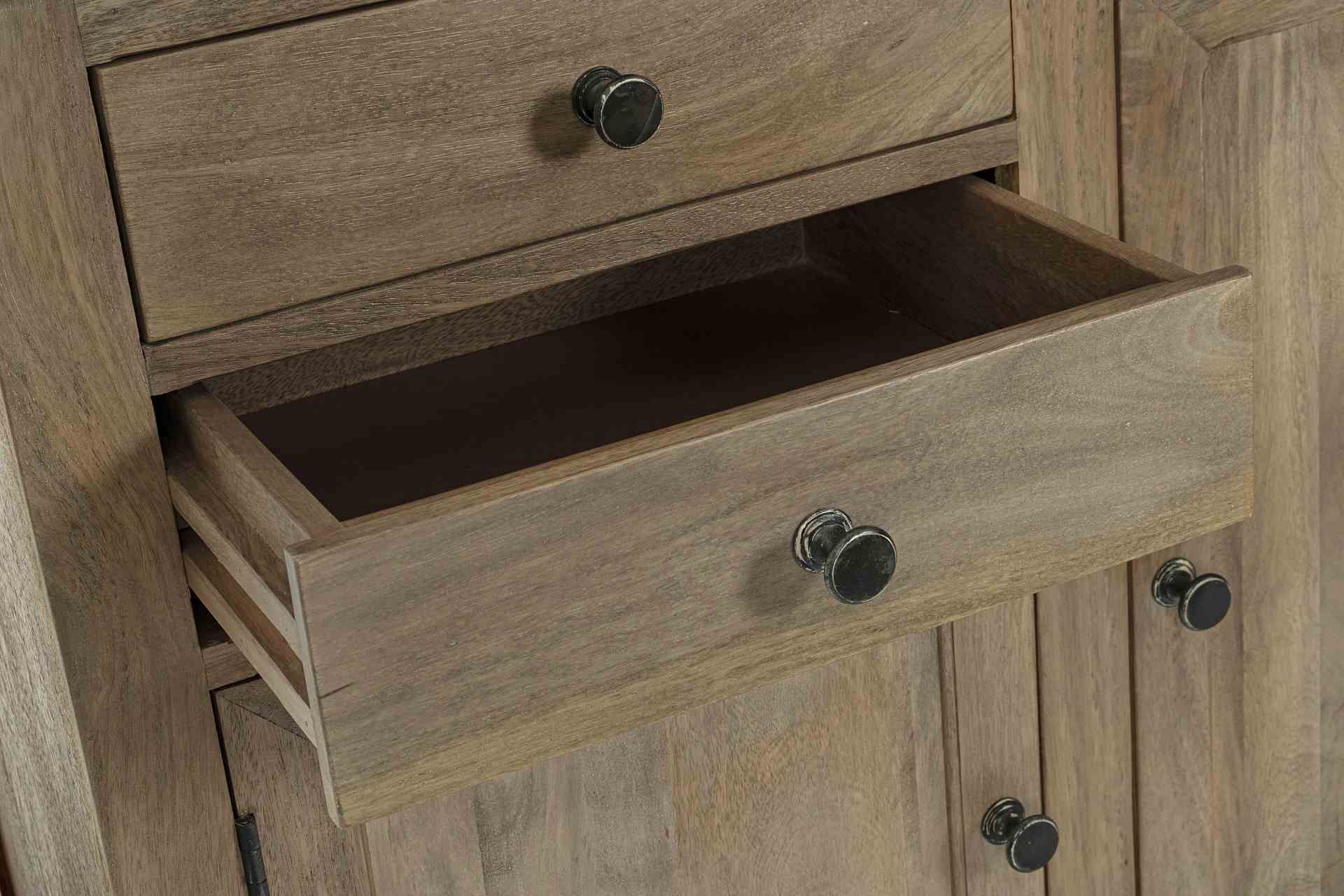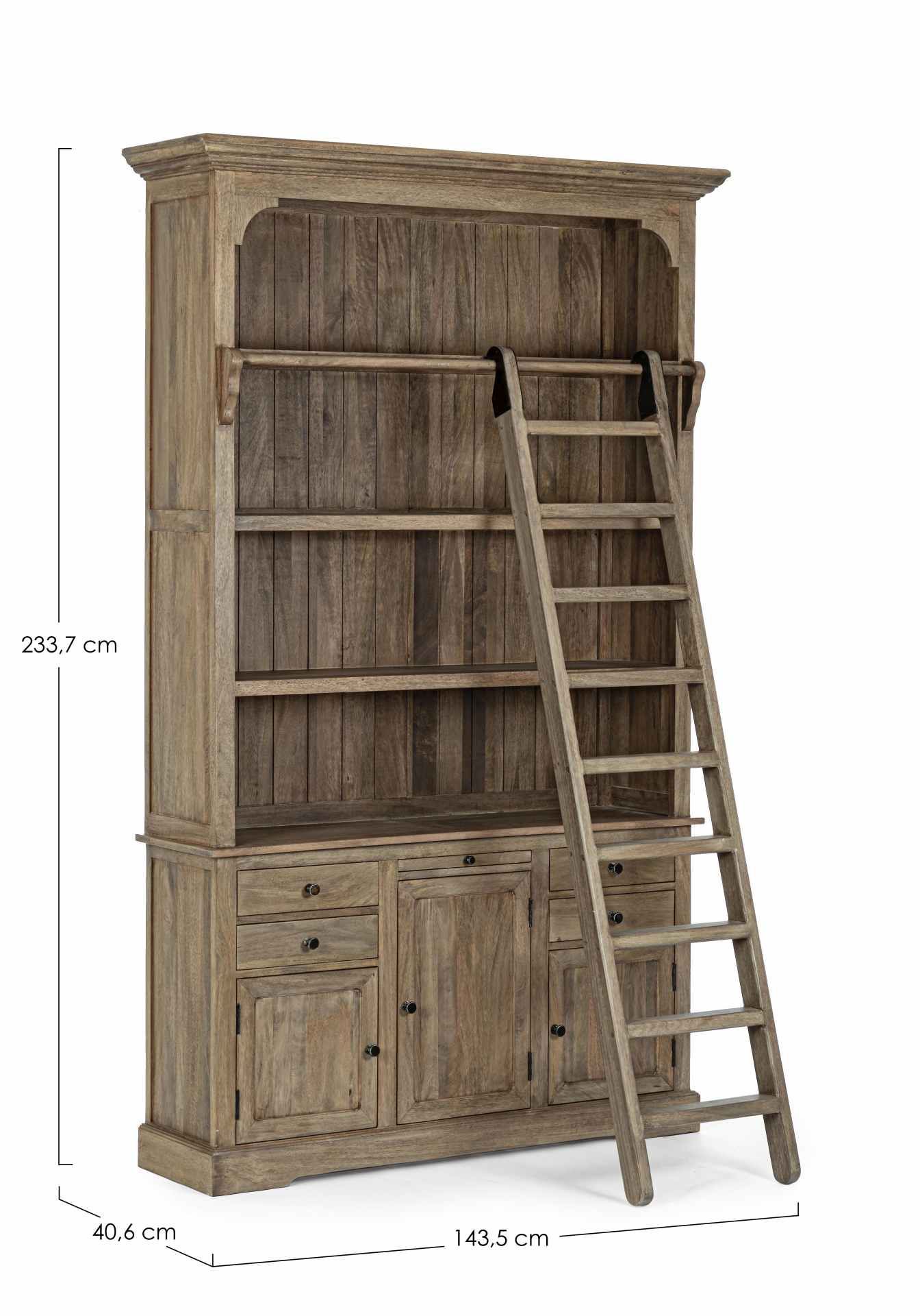 Bücherschrank Domitille aus Mangoholz, Landhausstil, natur, inklusive Leiter und Schu