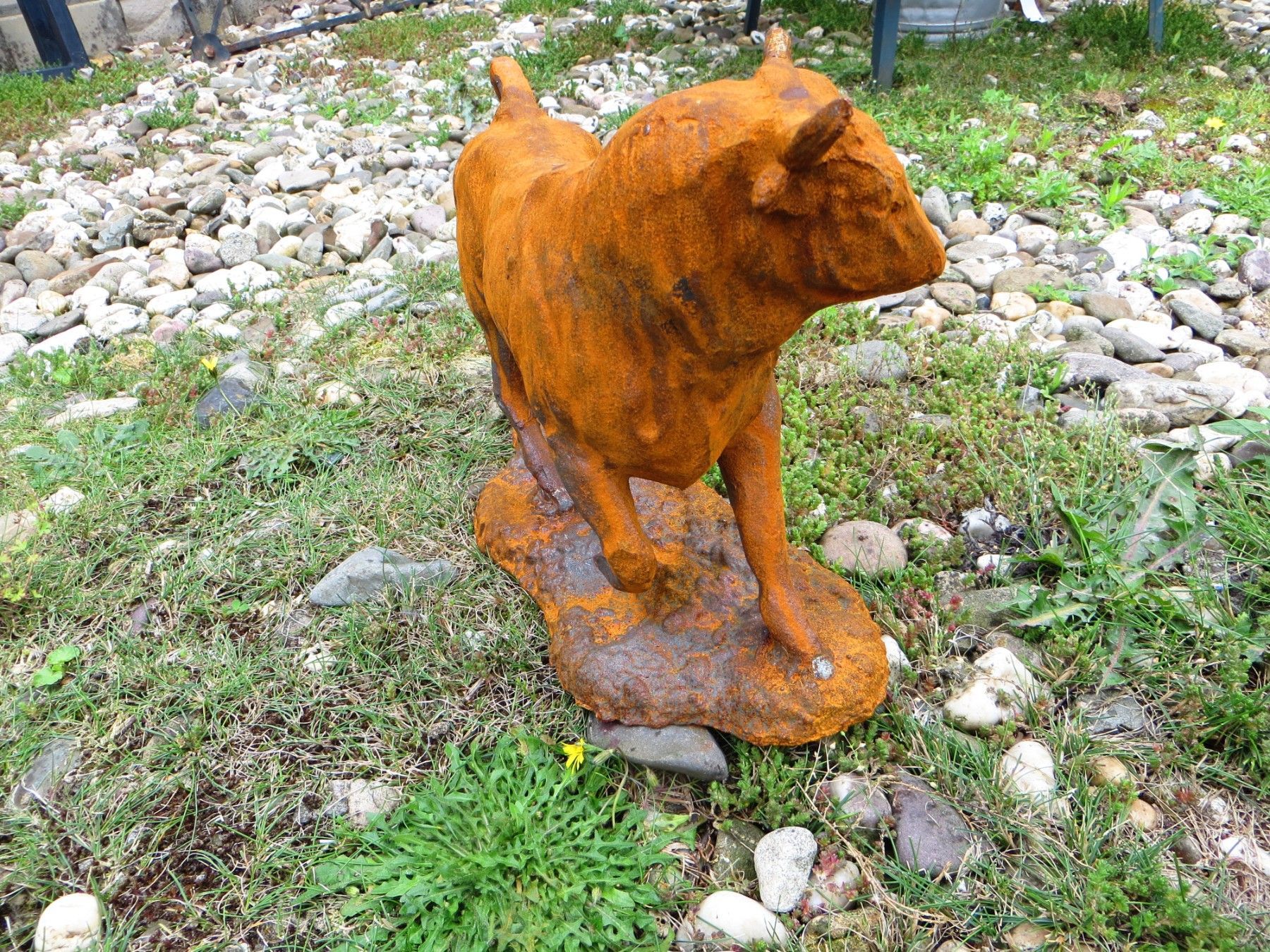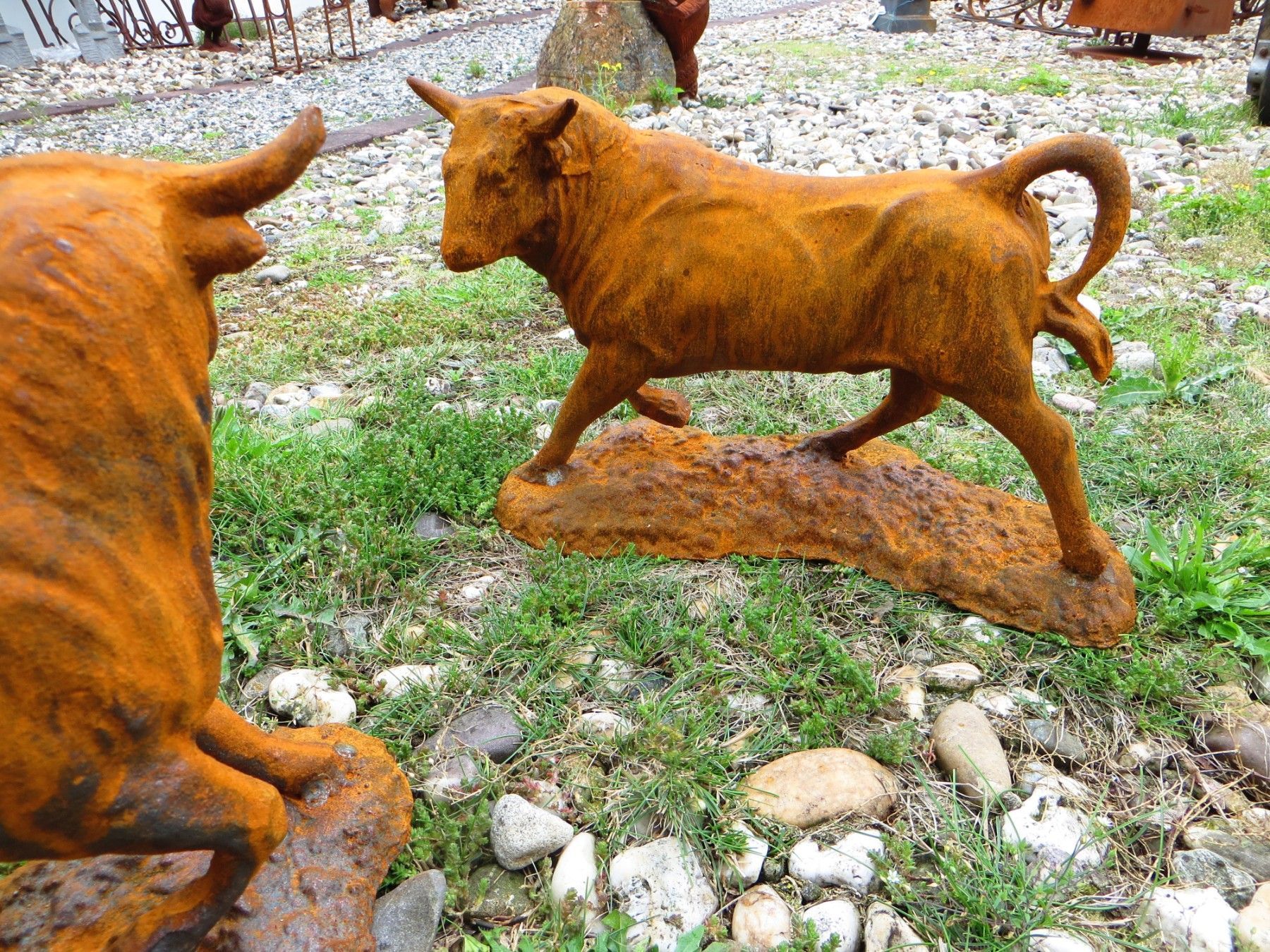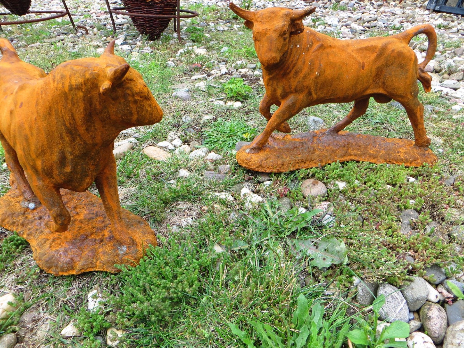 Hier haben Sie die Gelegenheit einen wirklich sehr schönen Stier zu erwerben!!! Diese Bullen aus Gusseisen in Eisen Natur können Sie bei Kuriosa &Deko bekommen !!! Das Tier hat eine Größe von ca. höhe 24cm, länge 35cm tiefe14cm das Gewicht beträgt ca.5kg. Selbstabholung ab Lager in 48712 Gescher