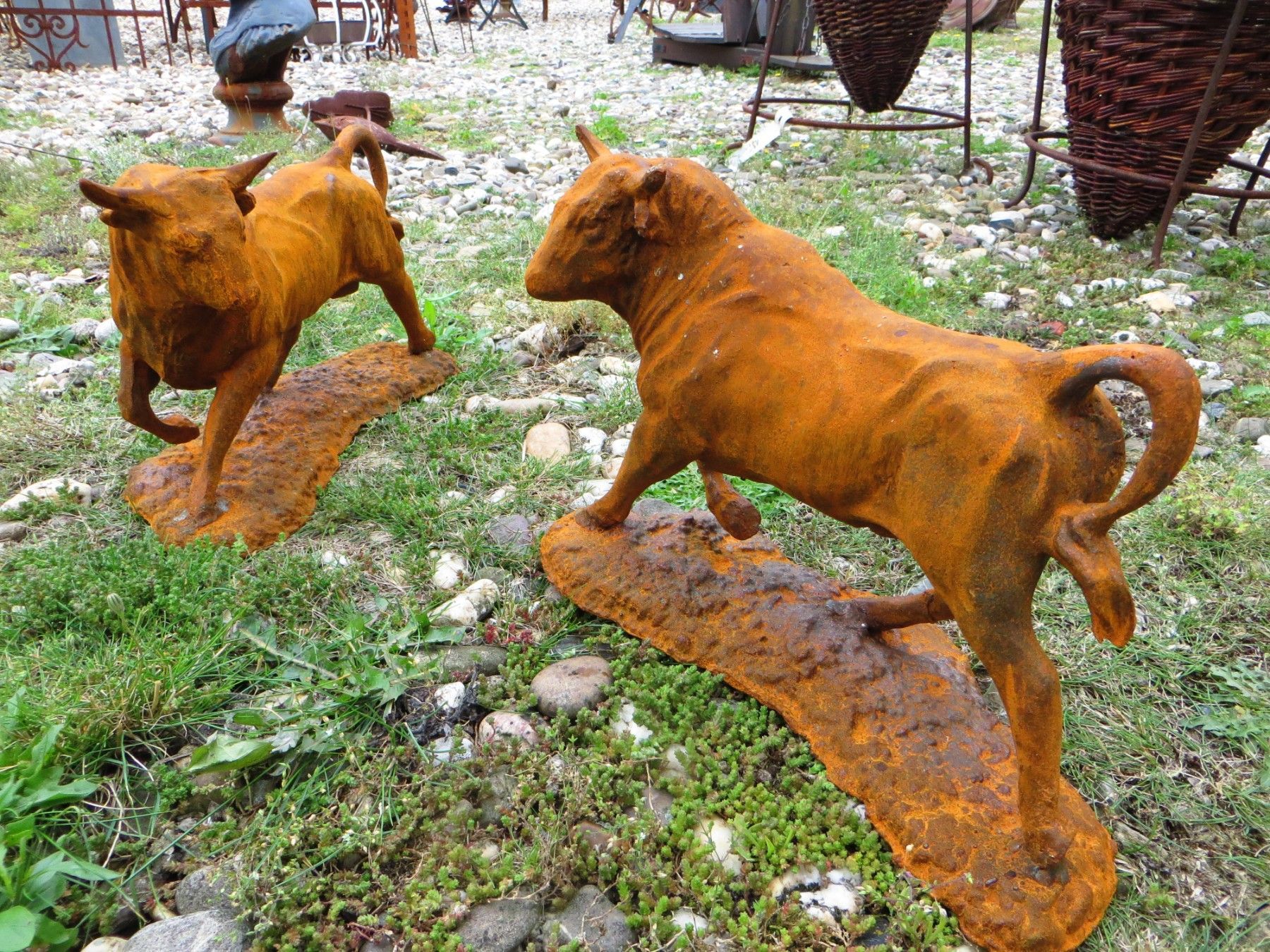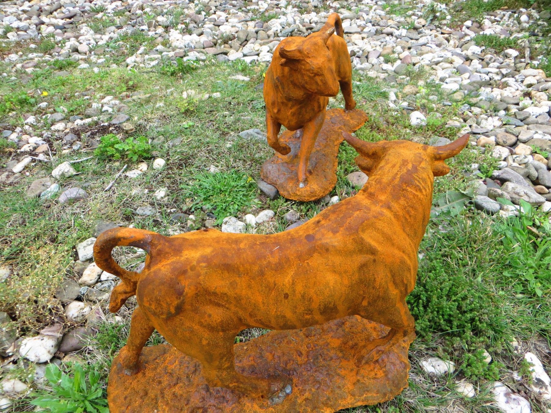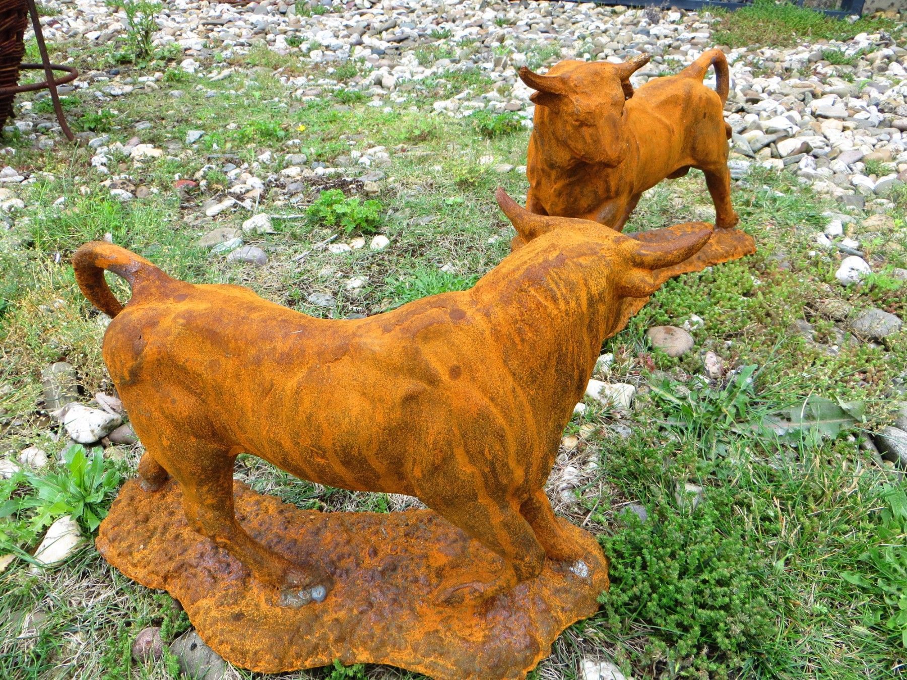 Hier haben Sie die Gelegenheit einen wirklich sehr schönen Stier zu erwerben!!! Diese Bullen aus Gusseisen in Eisen Natur können Sie bei Kuriosa &Deko bekommen !!! Das Tier hat eine Größe von ca. höhe 24cm, länge 35cm tiefe14cm das Gewicht beträgt ca.5kg. Selbstabholung ab Lager in 48712 Gescher