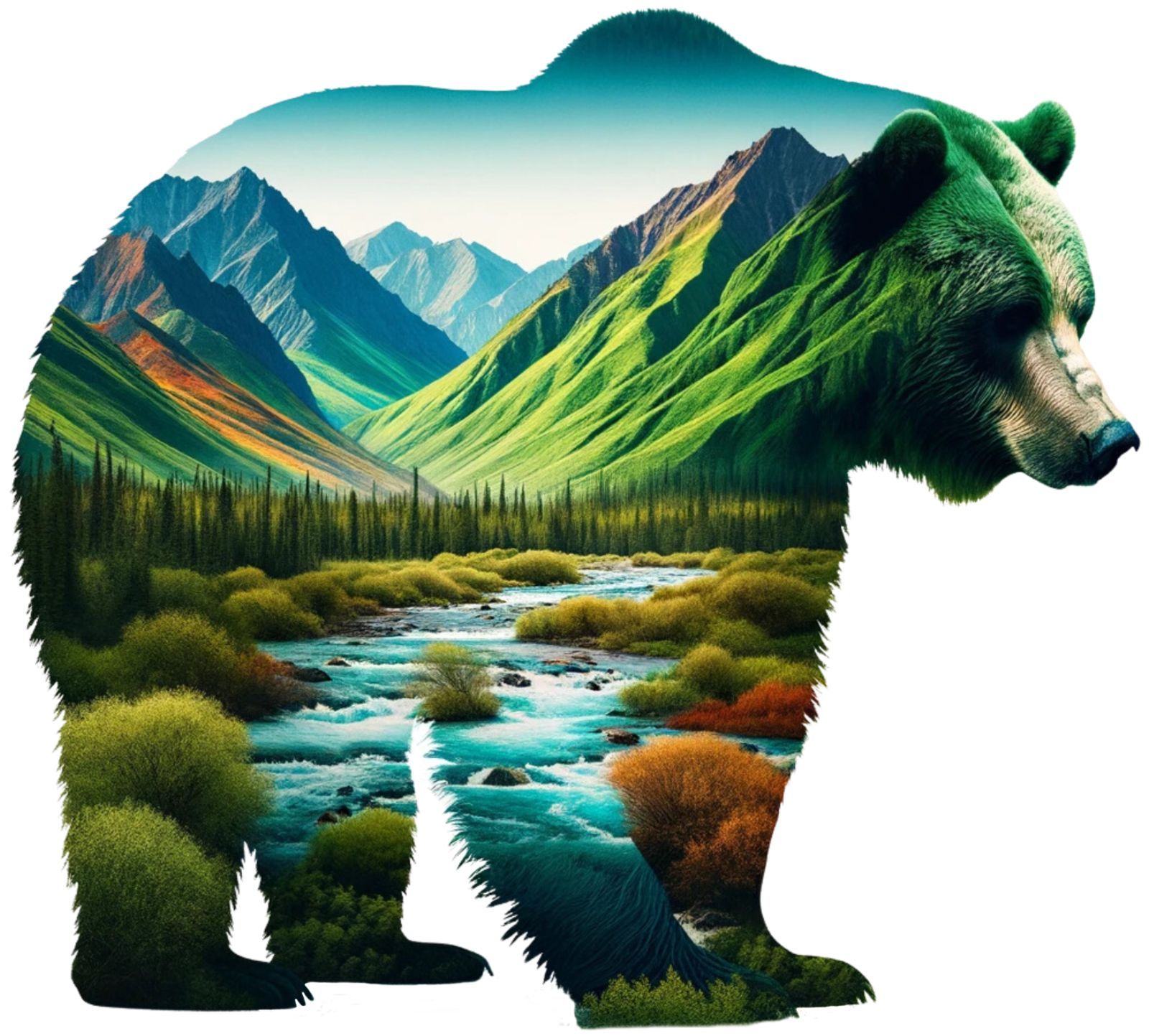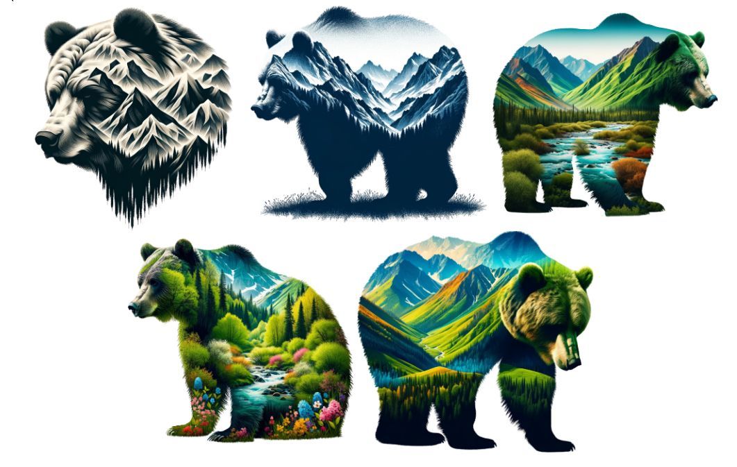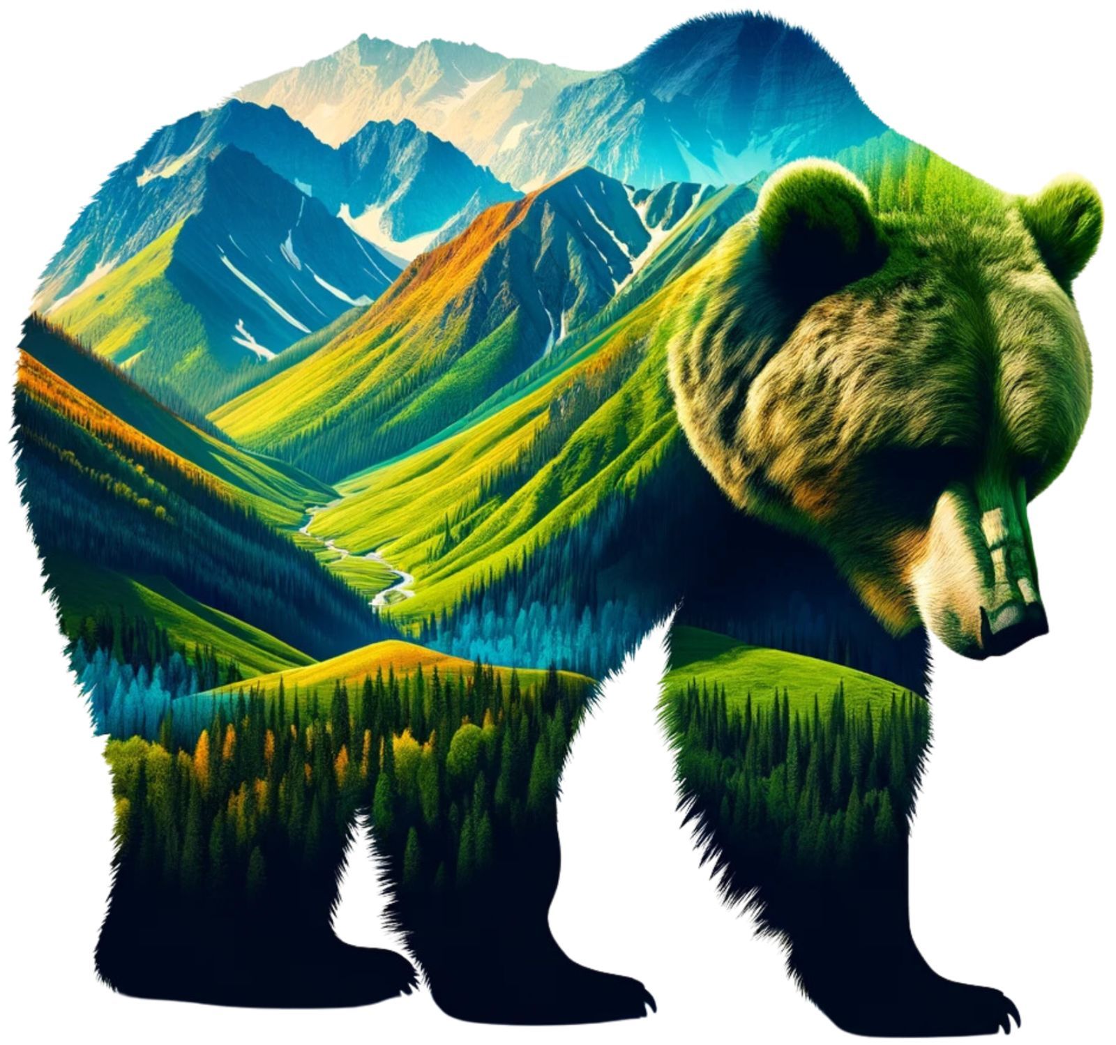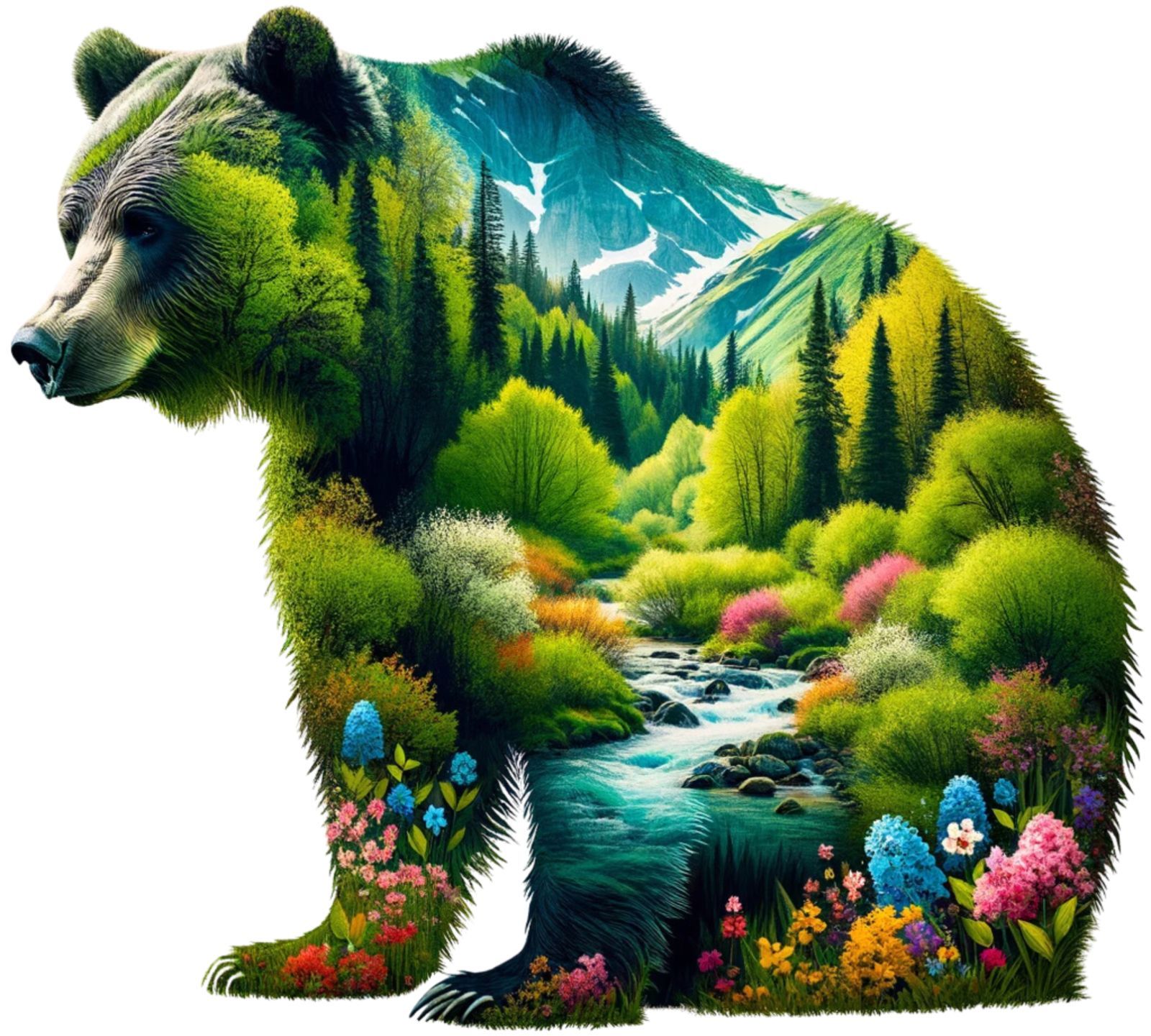 Bügelbild Bügelmotiv Bär Berge Natur Junge Mädchen verschiedene Größen