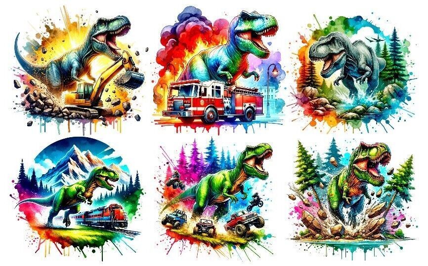 Bügelbild Bügelmotiv Dino Bagger Monstertruck Feuerwehr Zug verschiedene Größen