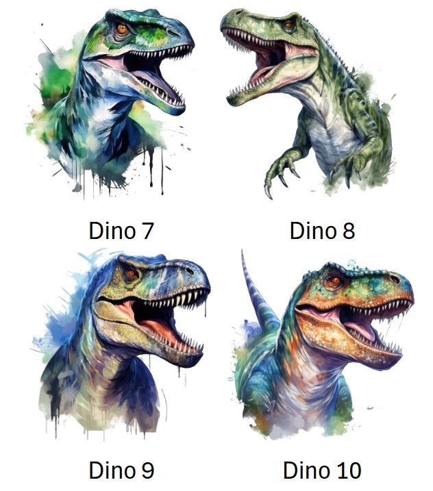 Dino 1, Dino 2, Dino 3, Dino 4, Dino 5, Dino 6, Dino 7, Dino 8, Dino 9 und Dino 10
