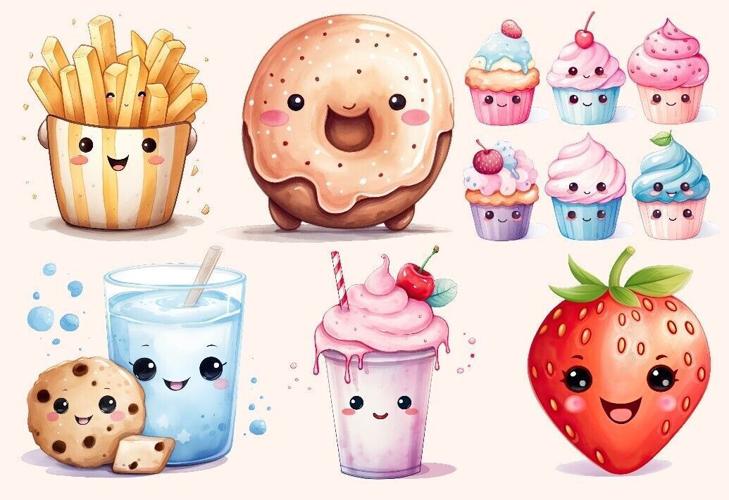 Bügelbild Bügelmotiv Kawaii Food Essen Trinken Mädchen Junge verschiedene Größen