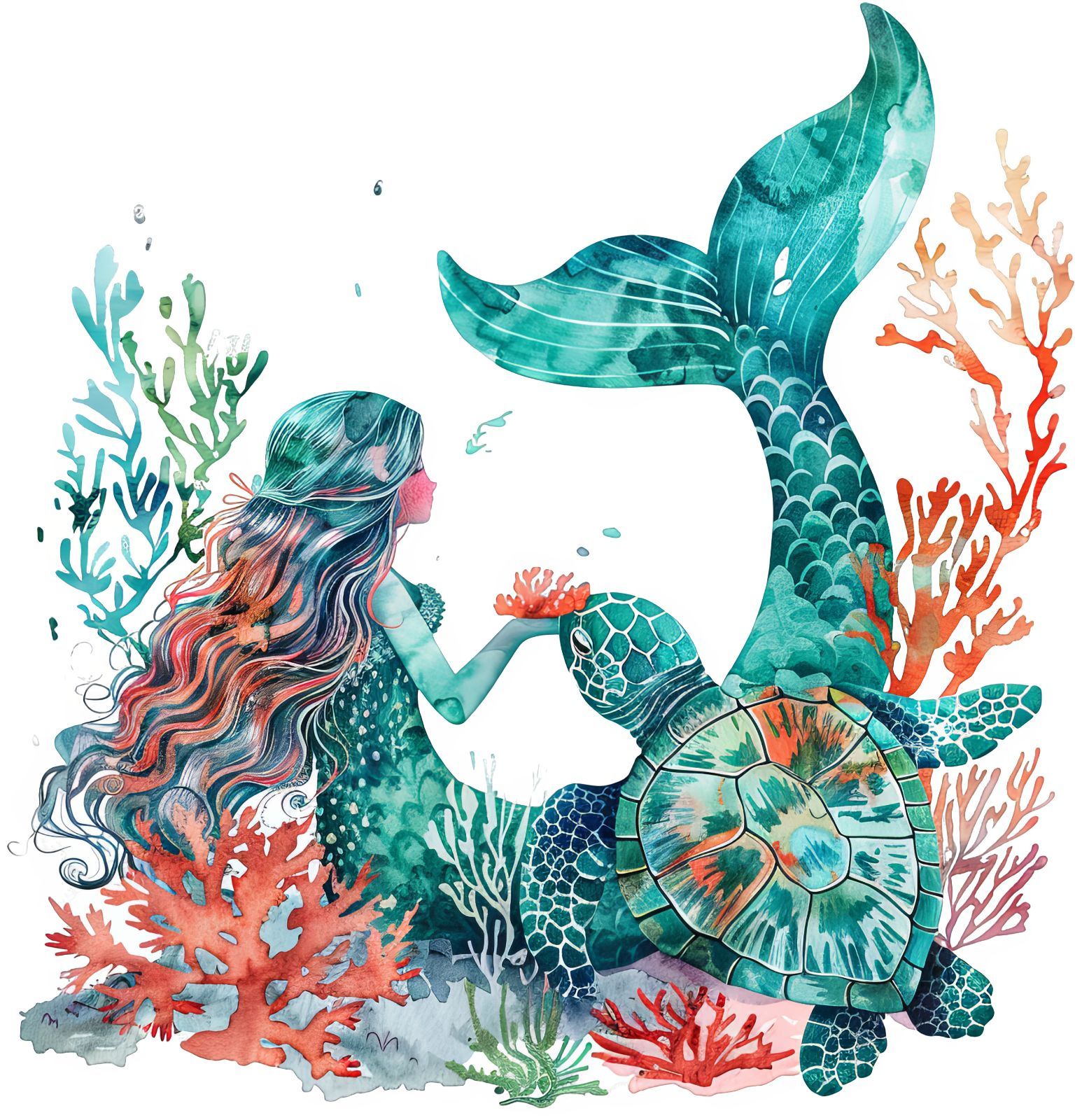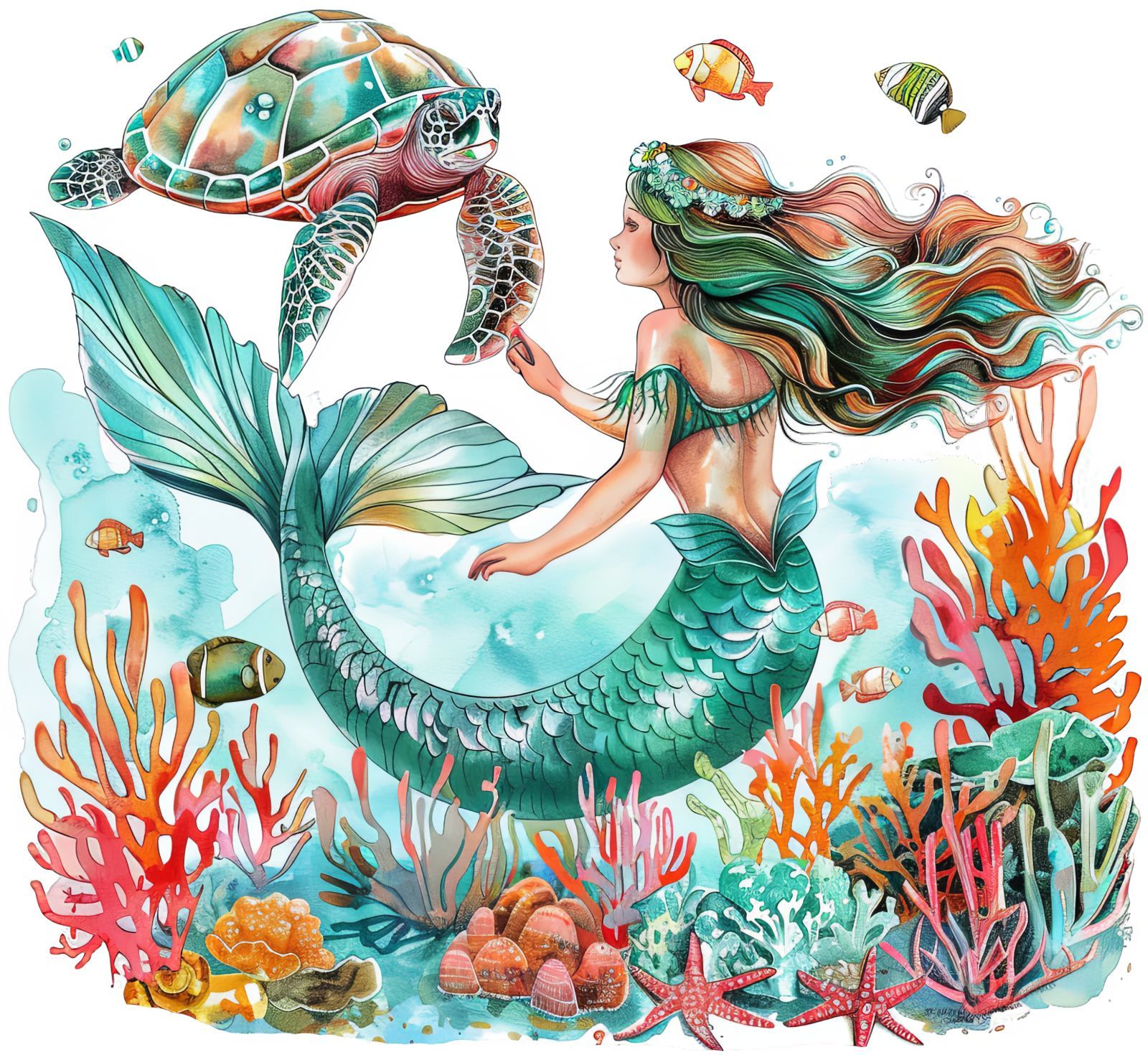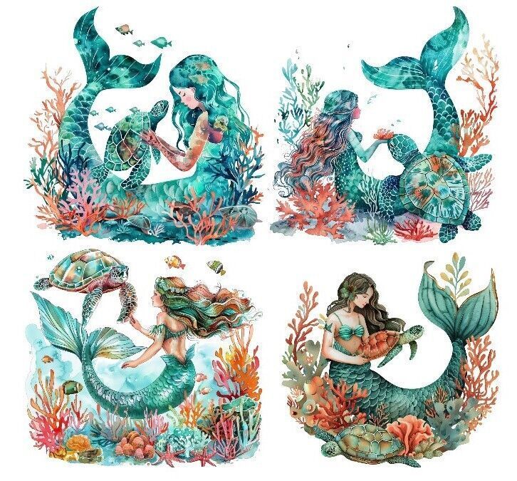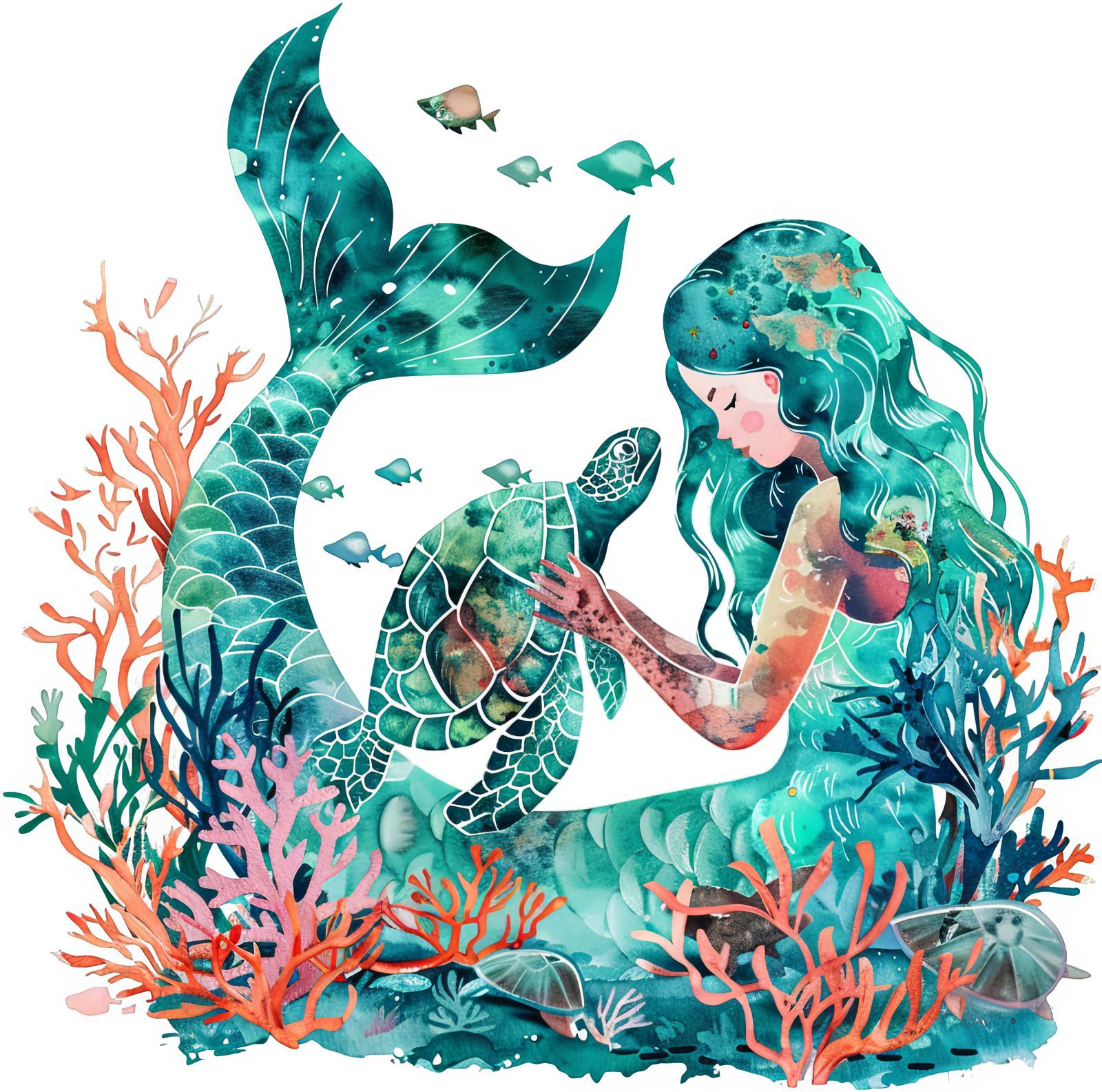 Bügelbild Bügelmotiv Meerjungfrau Nixe Schildkröte Meer verschiedene Größen