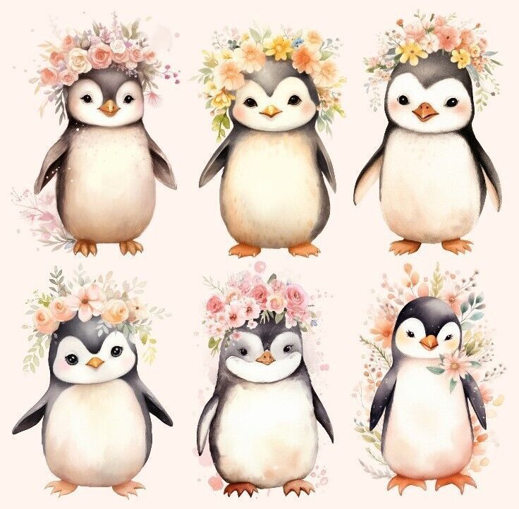 Bügelbild Bügelmotiv Pinguin Blumen floral Tier Mädchen verschiedene Größen
