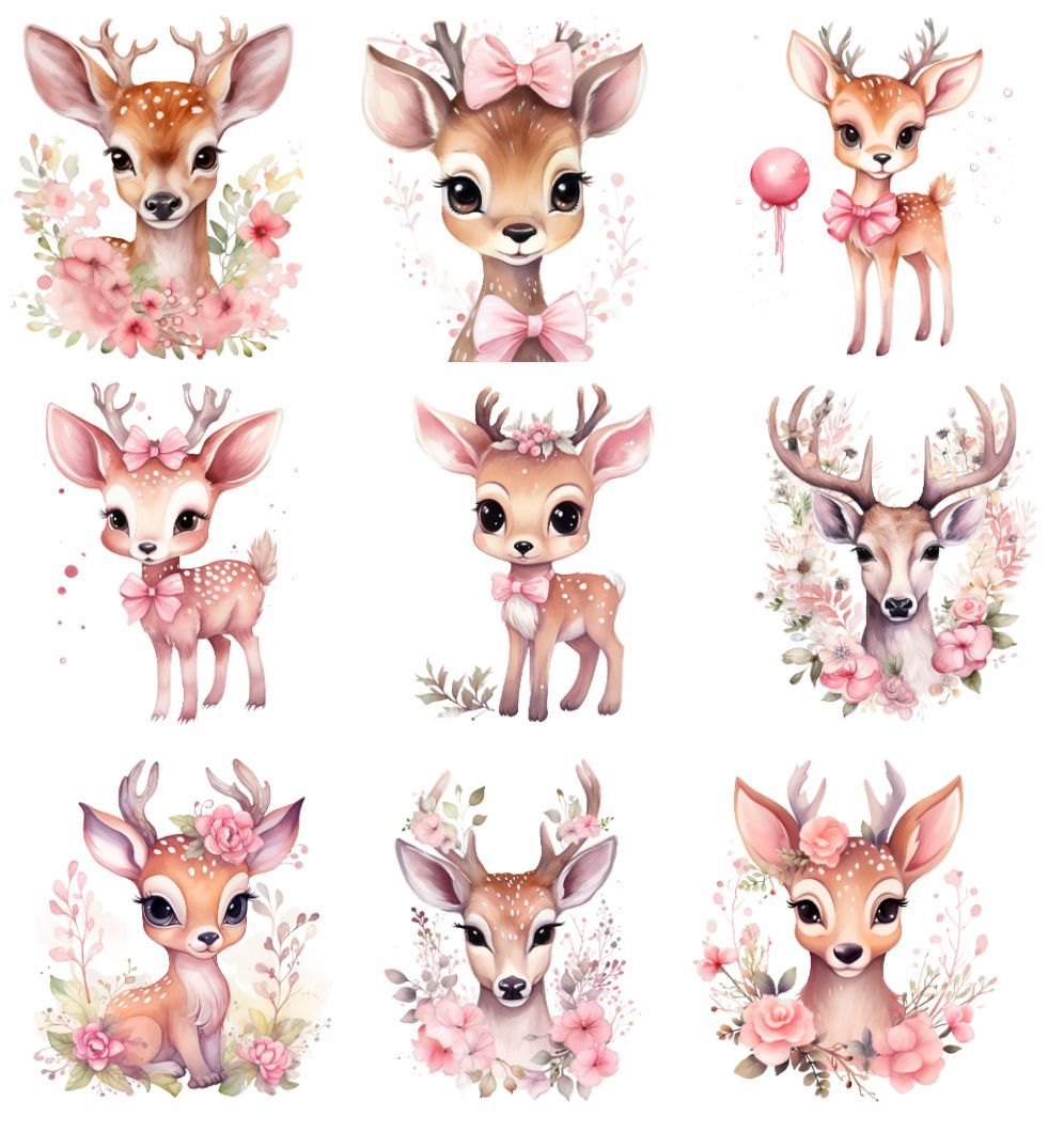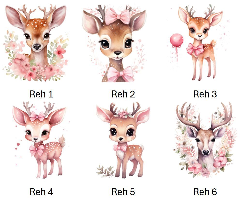 Bügelbild Bügelmotiv Reh Hirsch Kitz Blumen rosa Mädchen verschiedene Größen