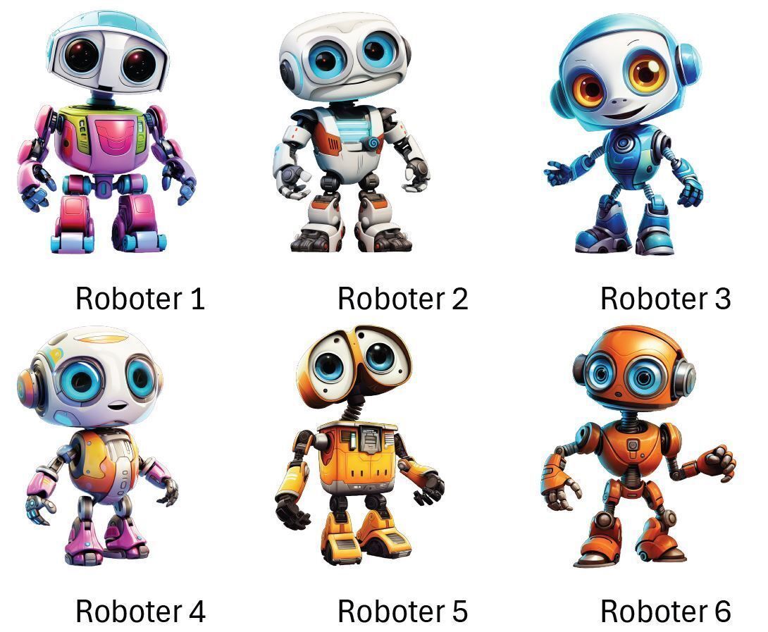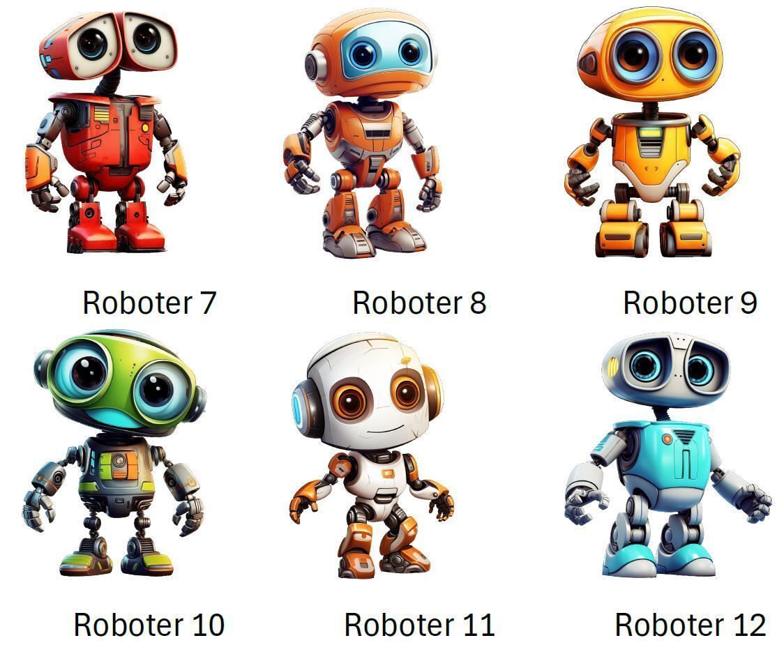 Roboter 1, Roboter 2, Roboter 3, Roboter 4, Roboter 5, Roboter 6, Roboter 7, Roboter 8, Roboter 9, Roboter 10, Roboter 11