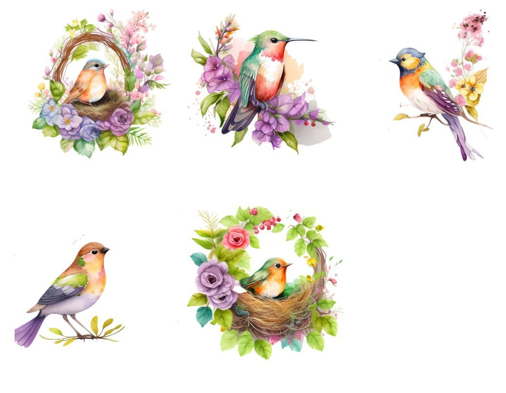 Vogel 1, Vogel 2, Vogel 3, Vogel 4 und Vogel 5