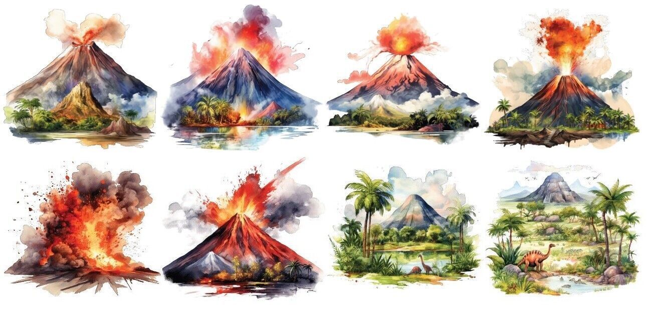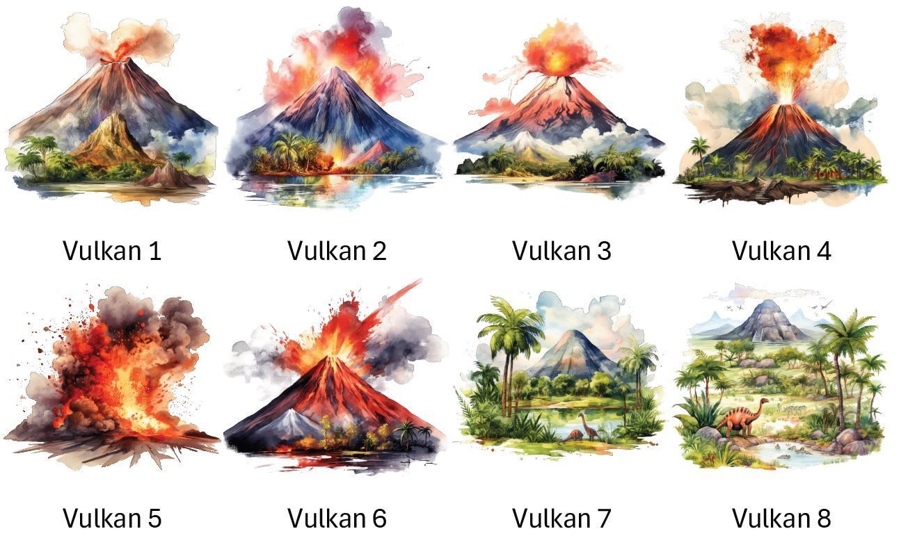 Bügelbild Bügelmotiv Vulkan Explosion Dino Junge Mädchen verschiedene Größen