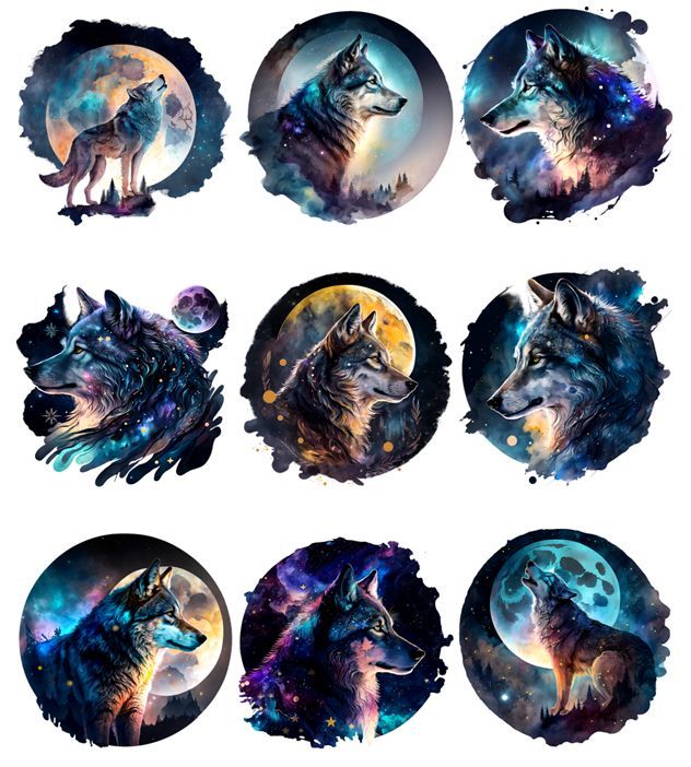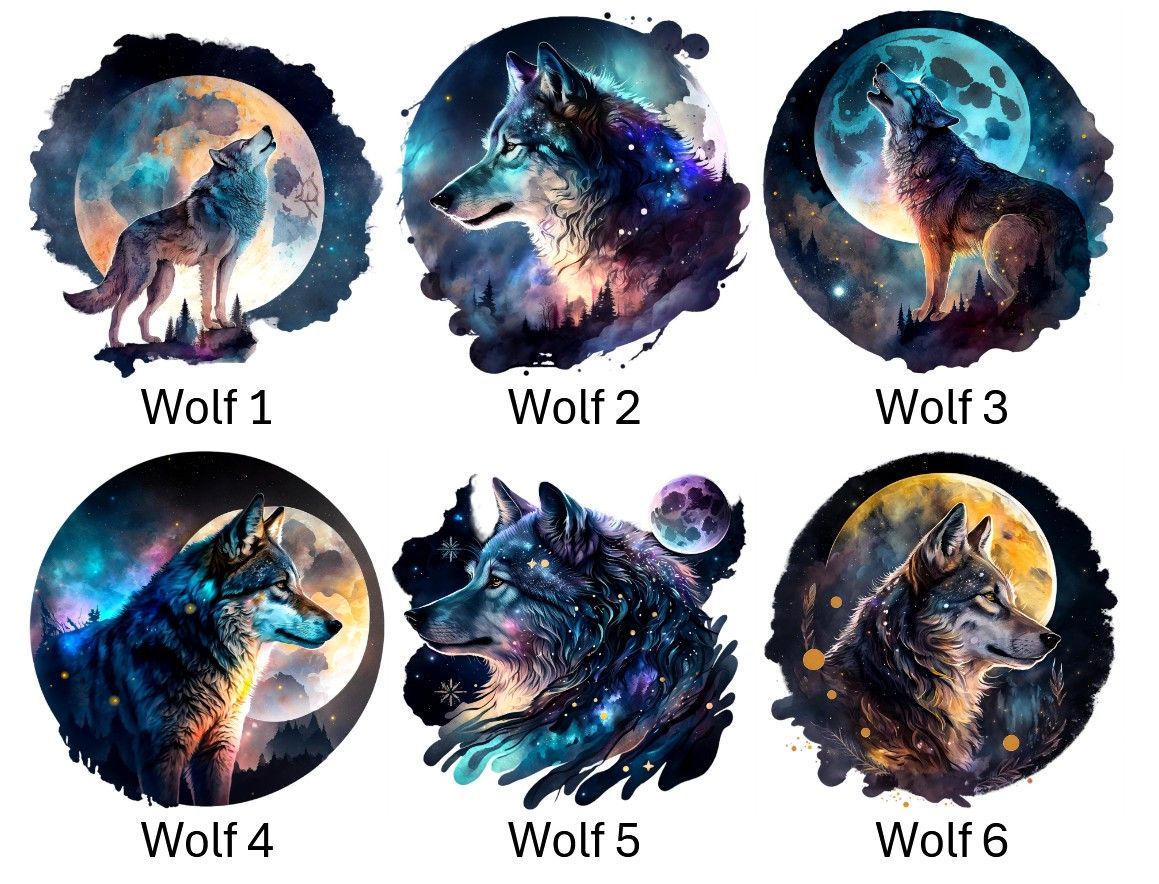 Bügelbild Bügelmotiv Wolf Mond Nacht Tier Junge Mädchen verschiedene Größen