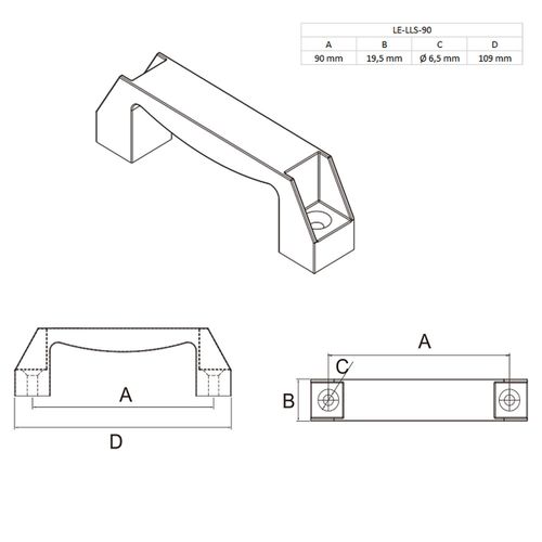 Bügelgriff Handgriff 90mm für Aluprofil 30-er, 40-er inkl. Verschraubung