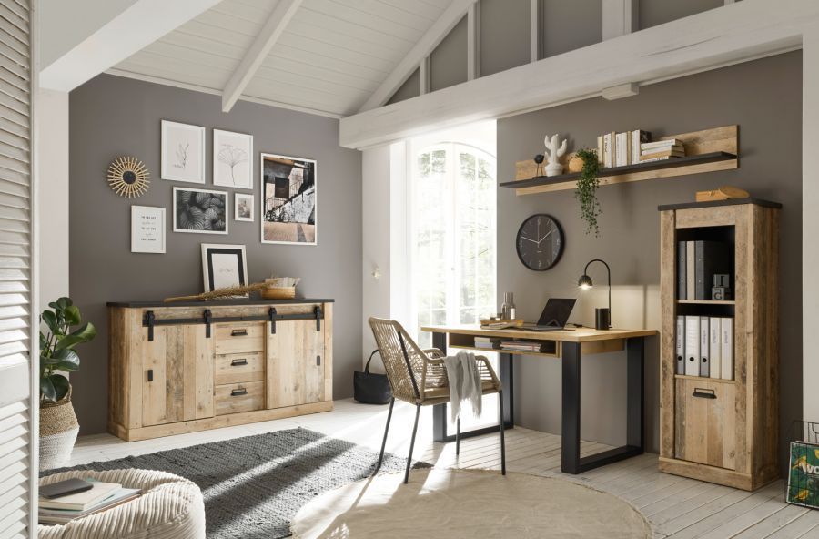 Büro Möbel Set Arbeitszimmer Einrichtung Schreibtisch Kommode in Used Wood Stove