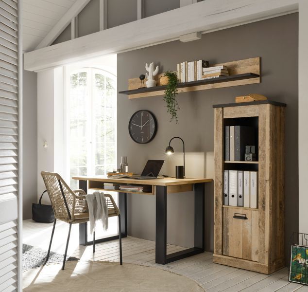 Büro Möbel Set Arbeitszimmer Einrichtung Schreibtisch Schrank in Used Wood Stove