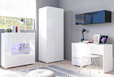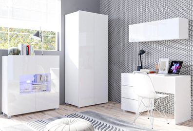 • AX LIVING Büro Schrankwand Kossana 8 Funktional und Modern Design Weiß