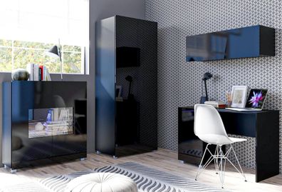 • AX LIVING Büro Schrankwand Kossana 8 - Funktional und Modern, Schwarz