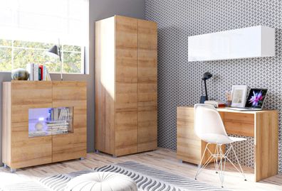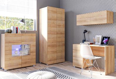 • AX LIVING Büro Schrankwand Kossana 8 - Funktional Goldene Eiche matt