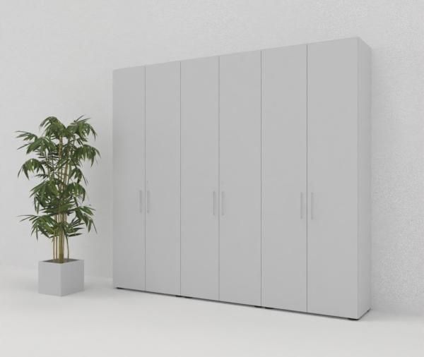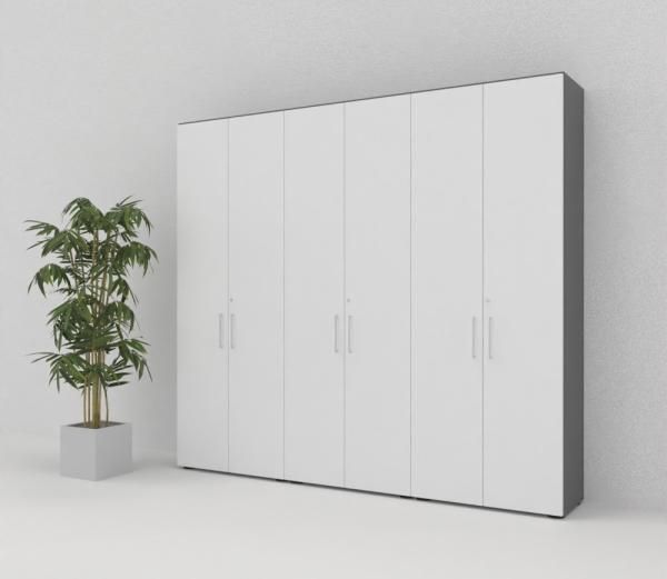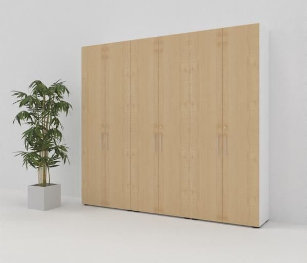 Büroschrankwand VH7, Gesamtbreite 240 cm, 3 Büroschränke verschließbar, 6 Ordnerhöhen in vielen Farben erhältlich.
