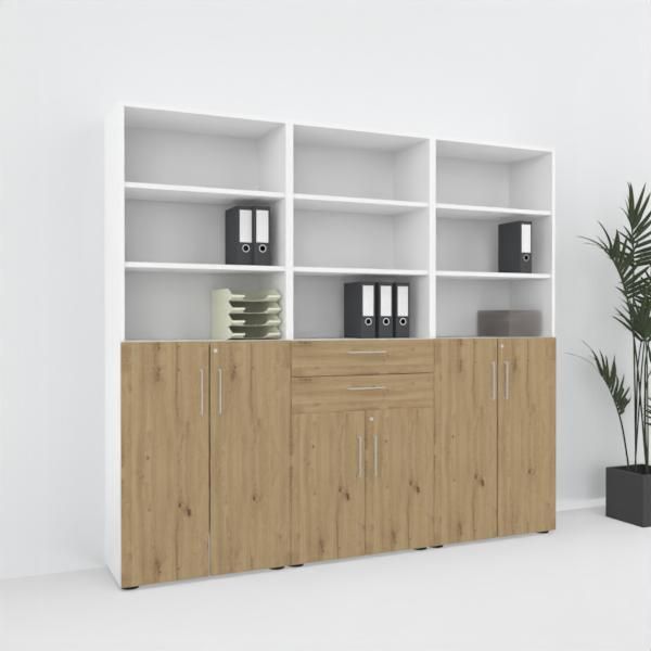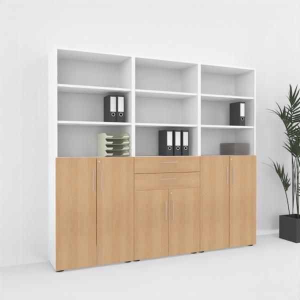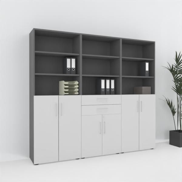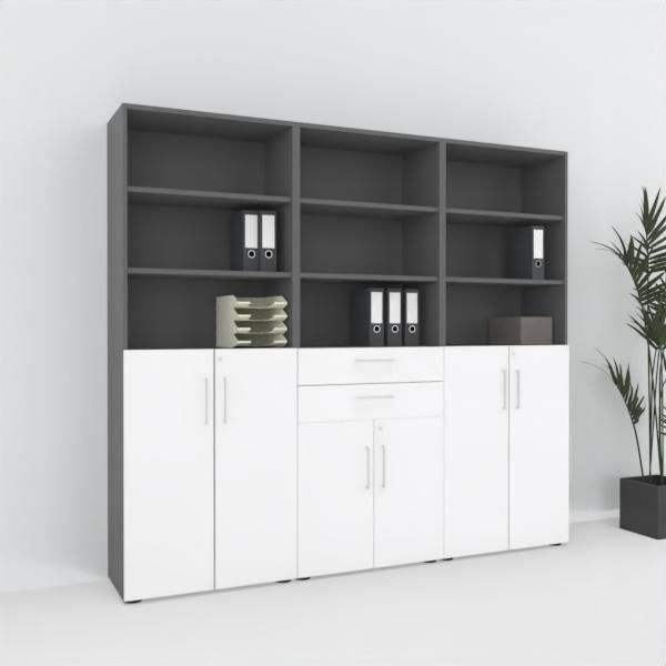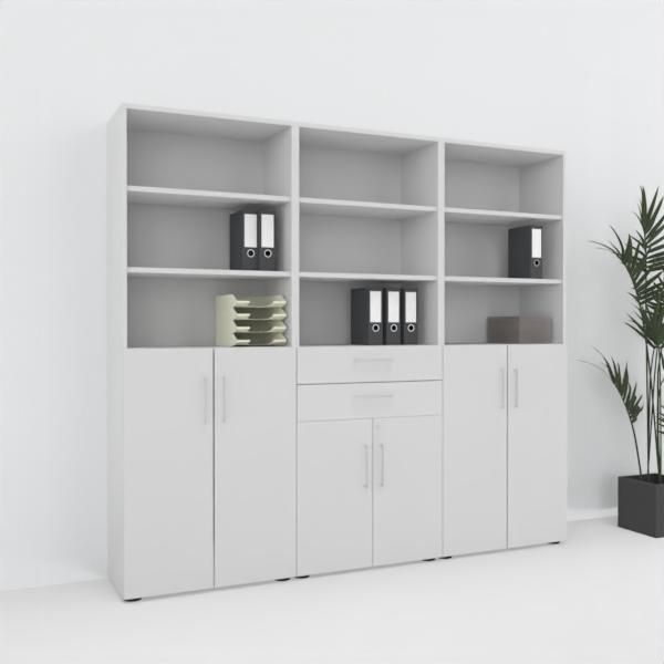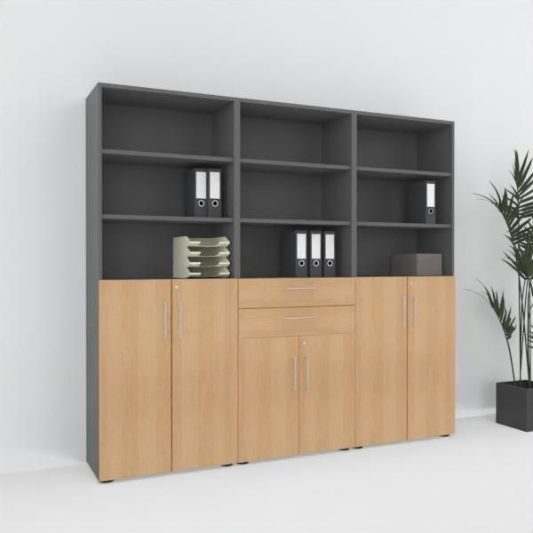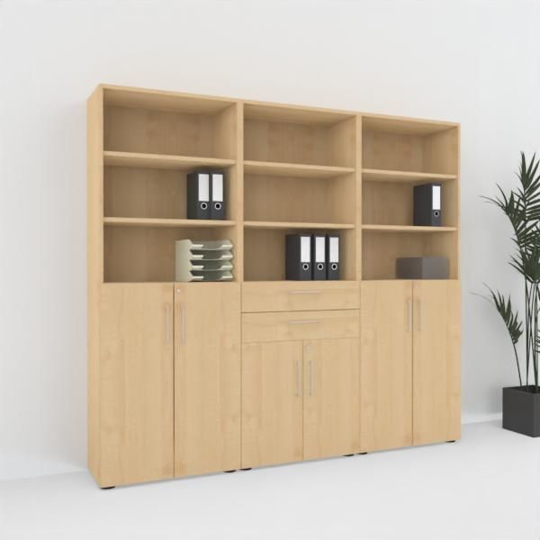 Büro-Schrankwand VH8 Büroschrank 240 cm breit 6 Ordnerhöhen Büroschrankwand 3-teilig