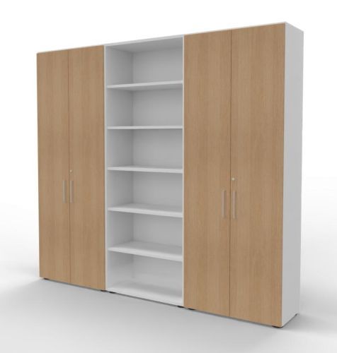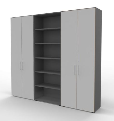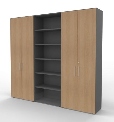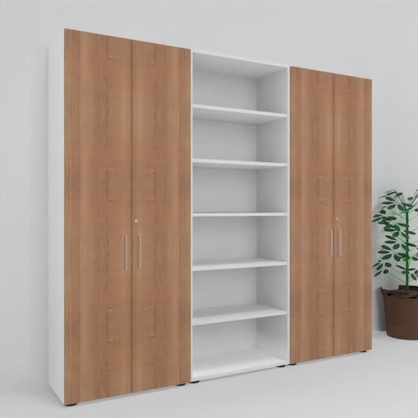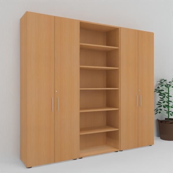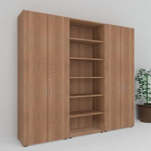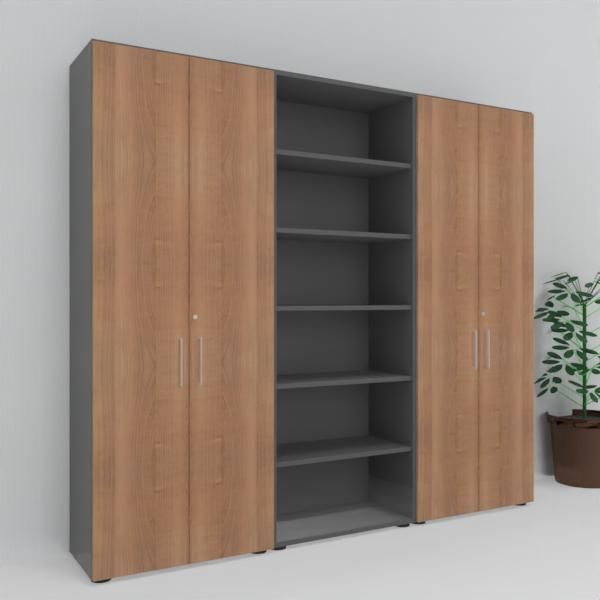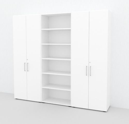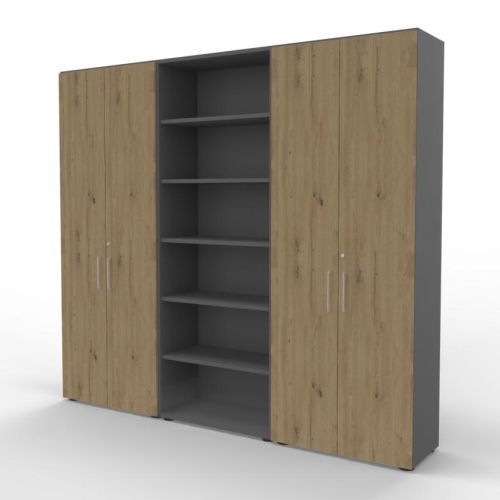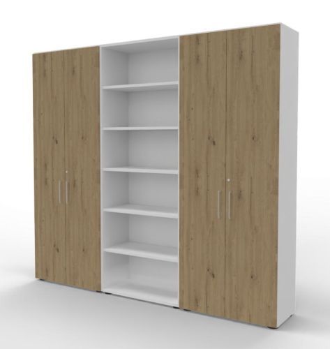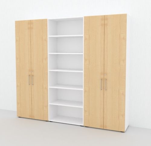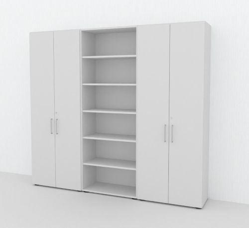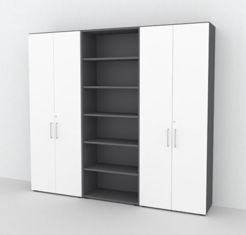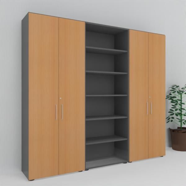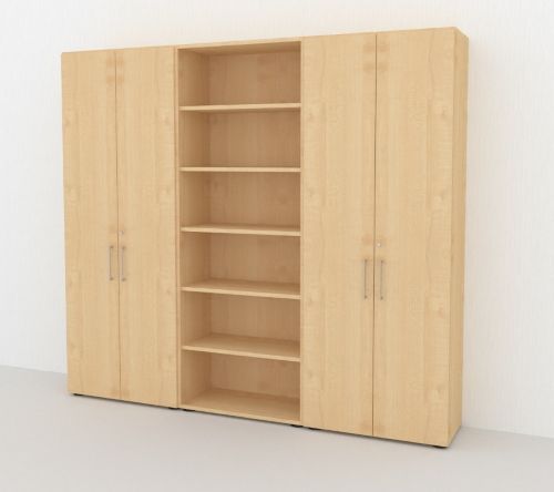 Büro-Schrankwand VH97 Breite 240 cm 6 Ordnerhöhen bestehend aus 2 x Schrank 6 Ordnerhöhen 80 x 41,7 x 215,6 cm (B x T x H) und 1 x Regal 6 Ordnerhöhen 80 x 40 x 215,6 cm (B x T x H)