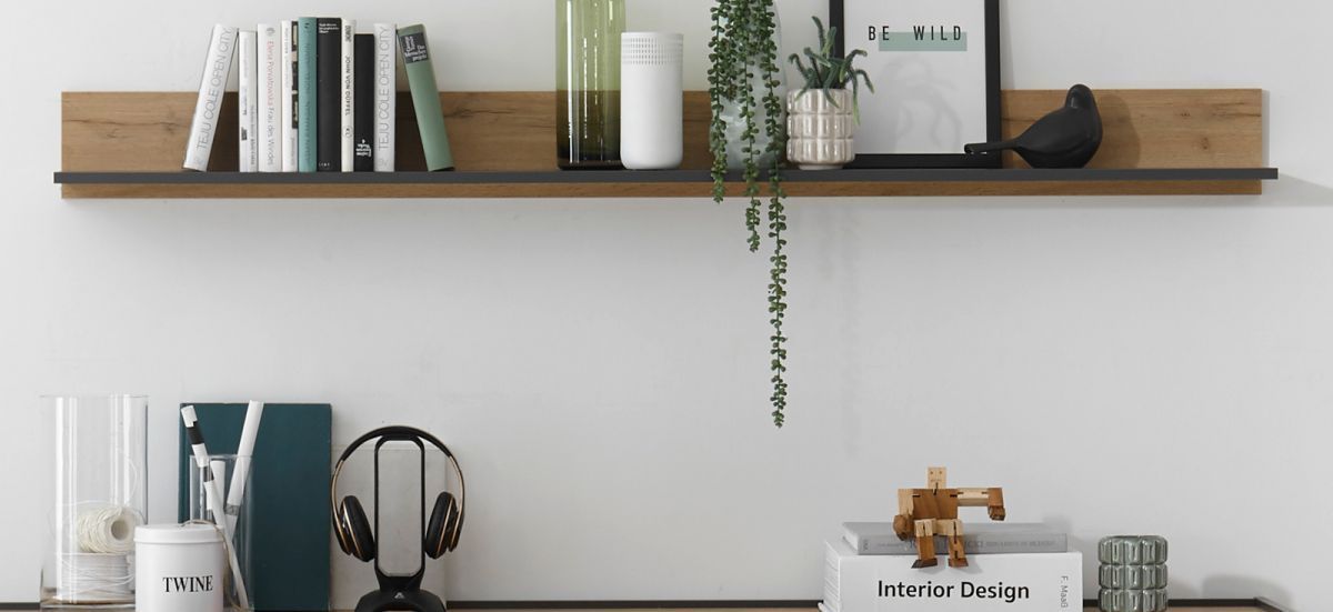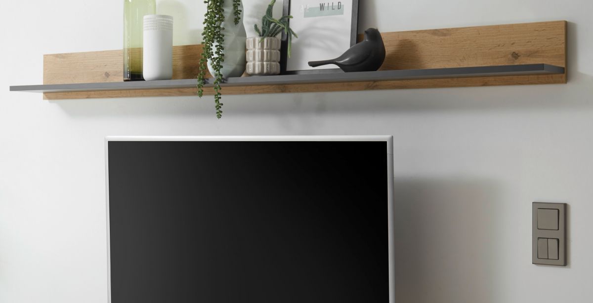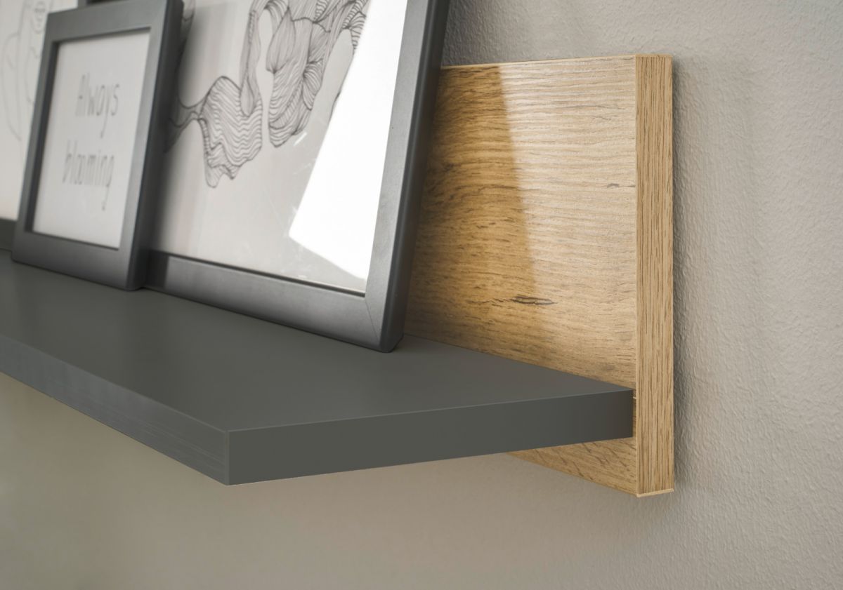 Büro Wandregal Bücherregal Wandboard grau und Eiche Regal hängend Center 170 cm