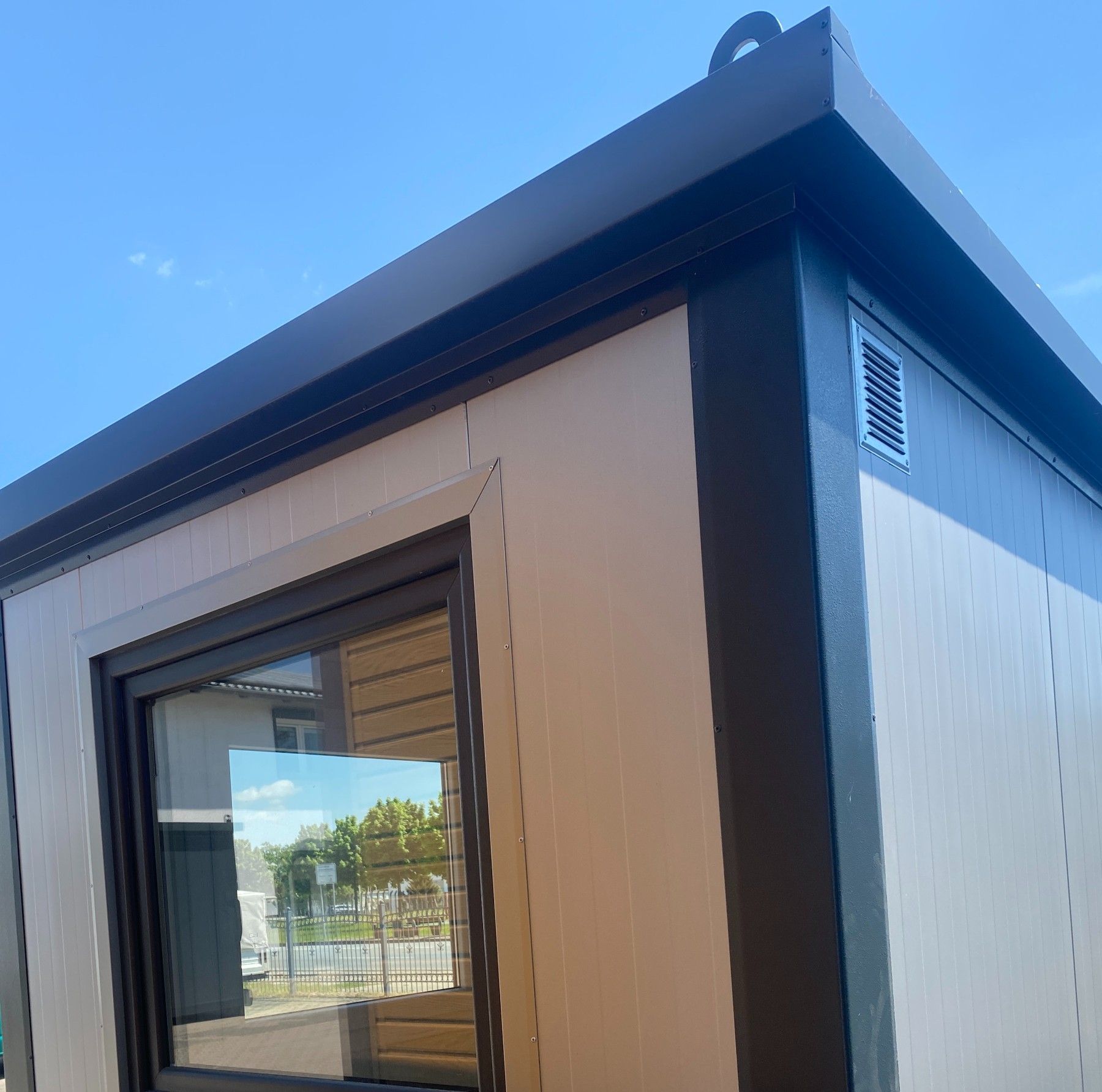 Bürocontainer 3,50 Meter x 2,20 Meter, Lieferung möglich, gern unterbreiten wir Ihnen ein Angebot. Für das Entladen bitte ein geeignetes Gerät bereitzustellen z.B. Gabelstapler oder Radlader. Andere Größen und in anderen Farben können wir nach ihren Vorgaben fertigen. Auf Wunsch auch mit WC oder and