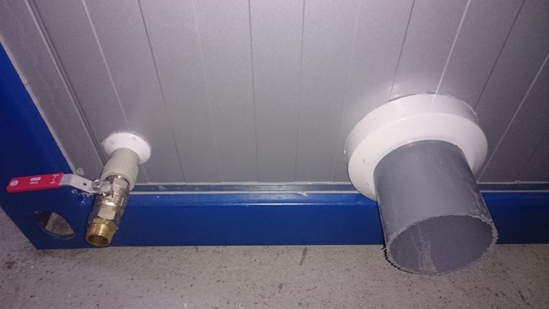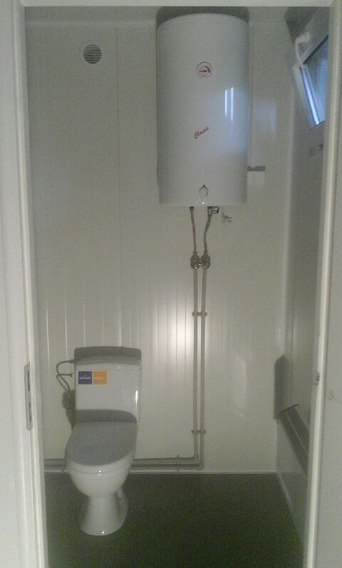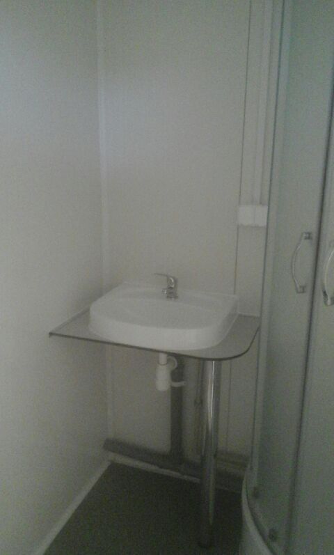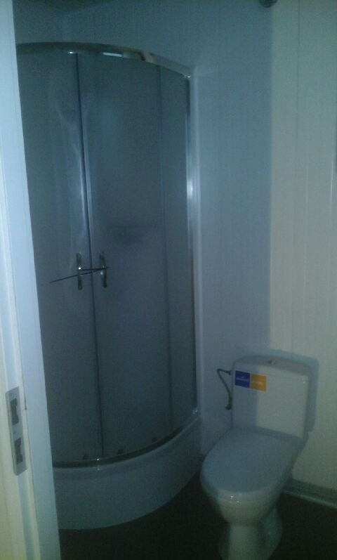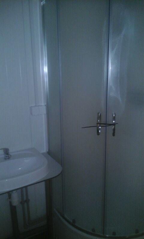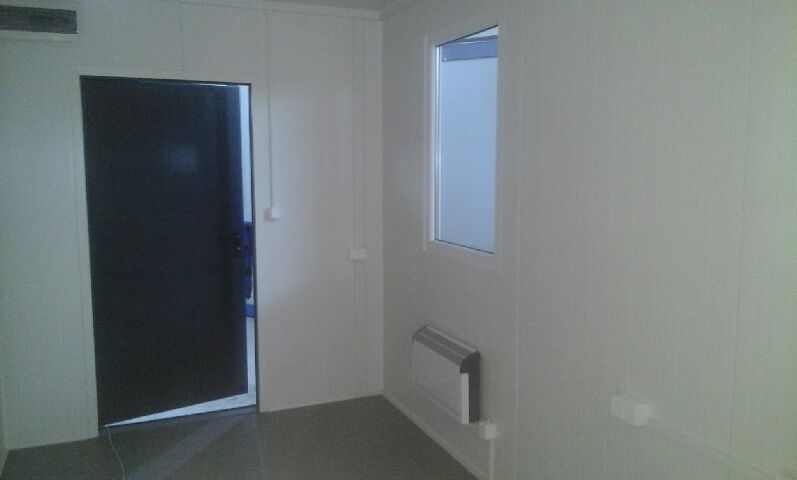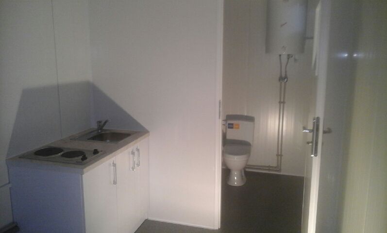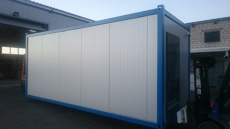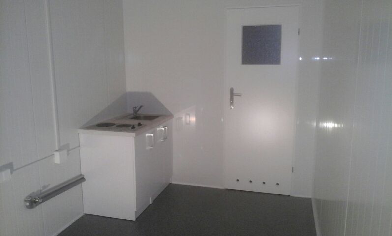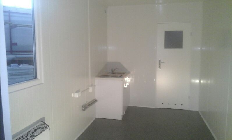 Wohncontainer mit Küche, Dusche und WC 6x 2,43 Meter, 2,70 Meter hoch. - Wände u. Dach Sandwichelemente 7,5 cm Isolierung. - Fenster Dreh Kipp (Doppelverglasung) - Wärmegedämmtes Sandwichprofil für geringen Energieverlust - Hörmann Stahlblech Außentür - Komplette Elektroinstallation nach EG Richtlin