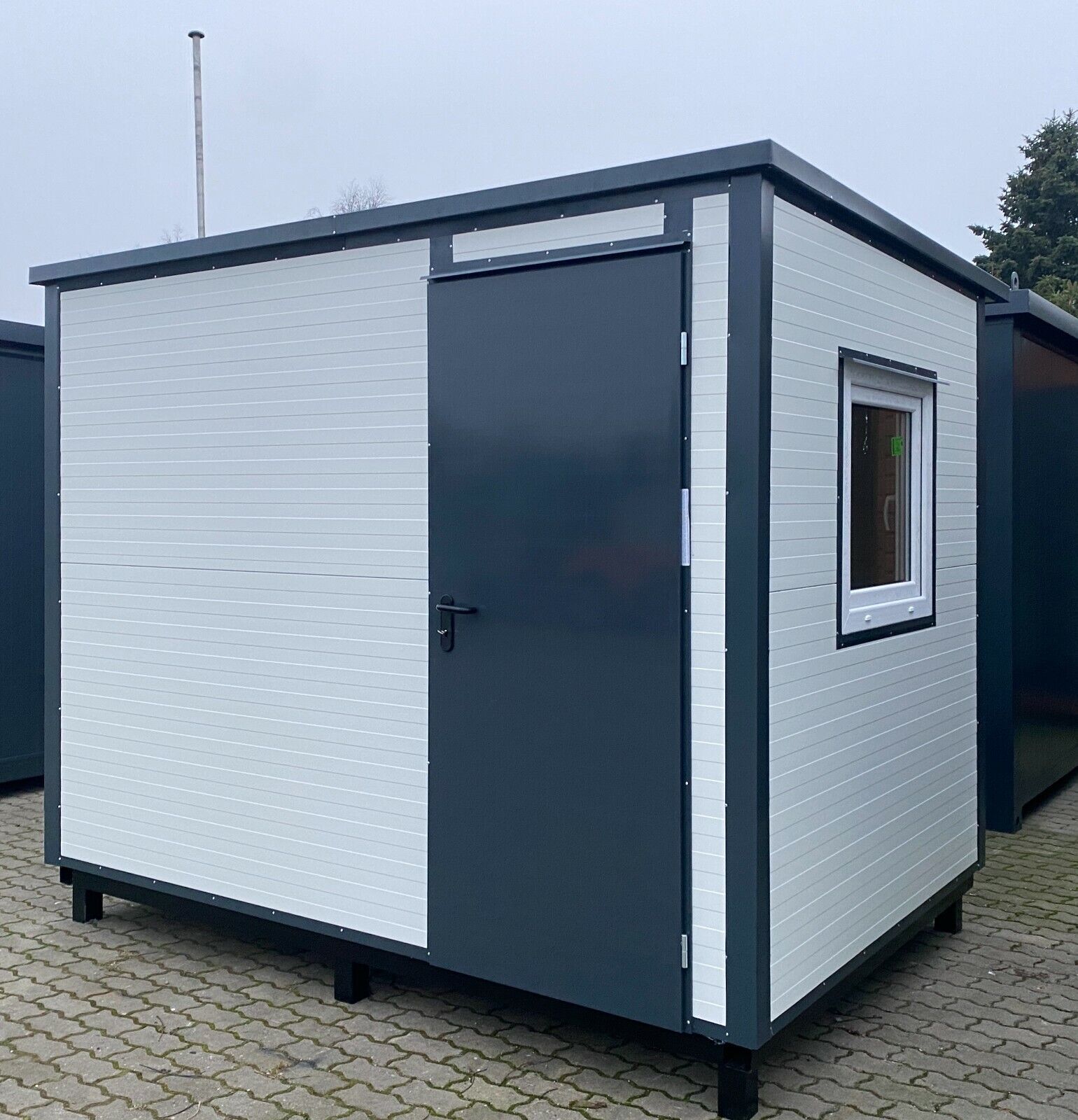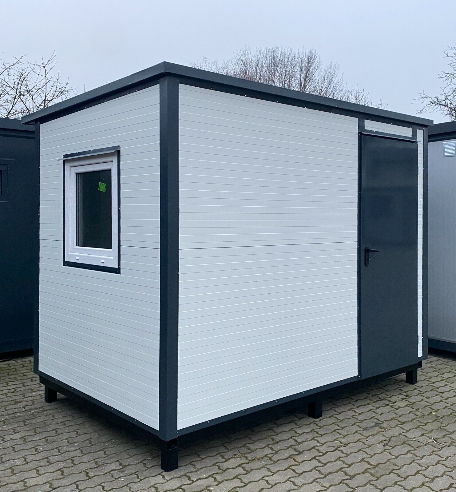Bürocontainer 3x2 Meter. Modell HBC3X2 Die Wände sind isolierte Sandwichplatten Der Fußboden ist PVC Belag auf OSB Platten. 3 Fenster. Die Eingangstür ist von Hörmann. Der Bürocontainer ist mit Steckdose, Sicherungskasten, Lampe ausgestattet. Lieferung möglich, für Entladung ist der Käufer verantwor