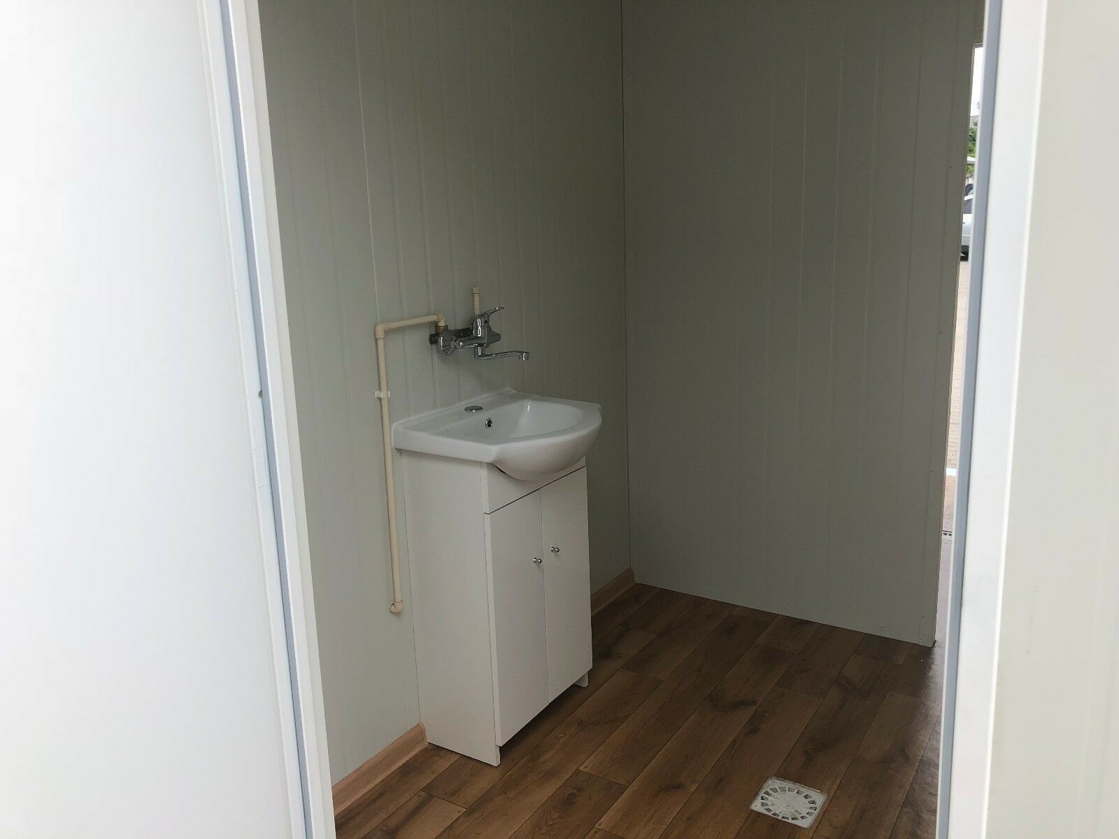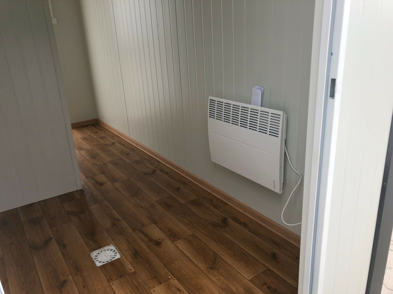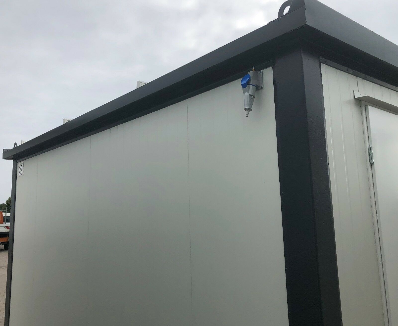 Schleuse Hygieneschleuse Umkleideraum 4 x 2,00 Meter , 2,70 Meter hoch - Wascharmatur, Waschbecken mit Unterschrank - Fußbodenablauf - Wände u. Dach Sandwichelemente 7,5 cm Isolierung. - Wärmegedämmtes Sandwichprofil für geringen Energieverlust - Komplette Elektroinstallation nach EG Richtlinien - S