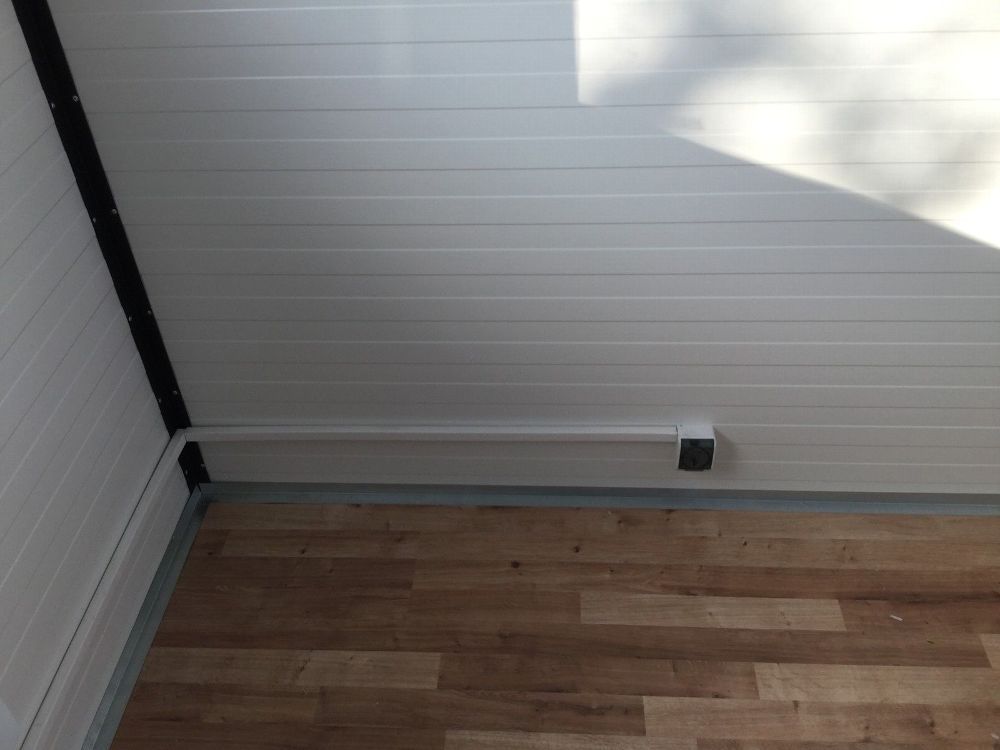 BÜROCONTAINER Gartenhaus Büro 2x2 Meter, sofort lieferbar - Wände u. Dach Sandwichelemente 6cm Isolierung. - 3 Fenster (Doppelverglasung) - Wärmegedämmtes Sandwichprofil für geringen Energieverlust - verzinkte Hörmann Stahlblech Außentür - Komplette Elektroinstallation nach EG Richtlinien - Steckdos