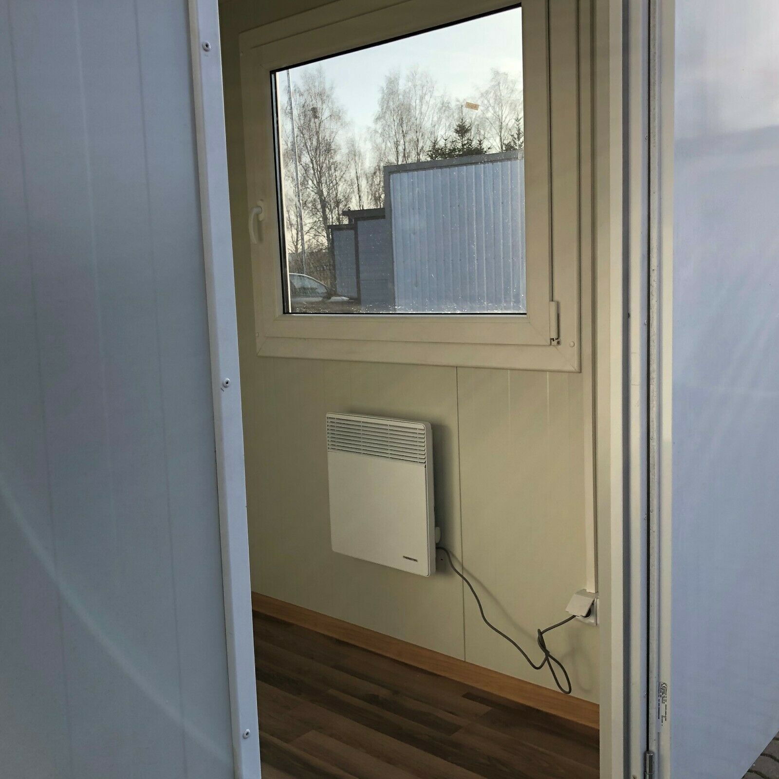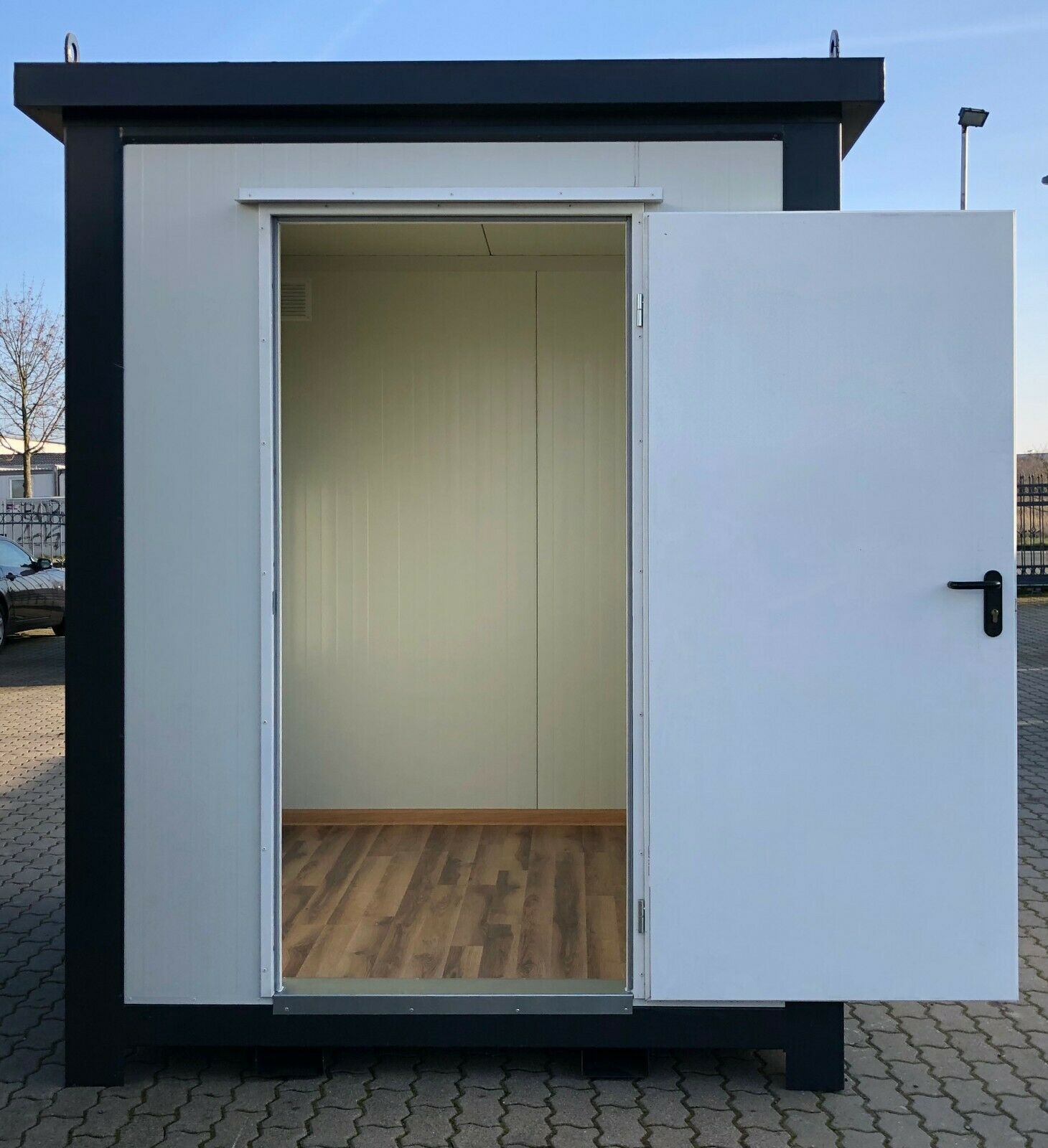 BÜROCONTAINER 2x2 Meter Mod. KBC2X2 - stabiler, geschweißter Rahmen mit Kranösen und Gabelstaplerführungen - Wände u. Dach Sandwichelemente 7,50 cm Isolierung. - Fenster Dreh Kipp mit isolierverglasung - Wärmegedämmtes Sandwichprofil für geringen Energieverlust - verzinkte Hörmann Stahlblech Außentü