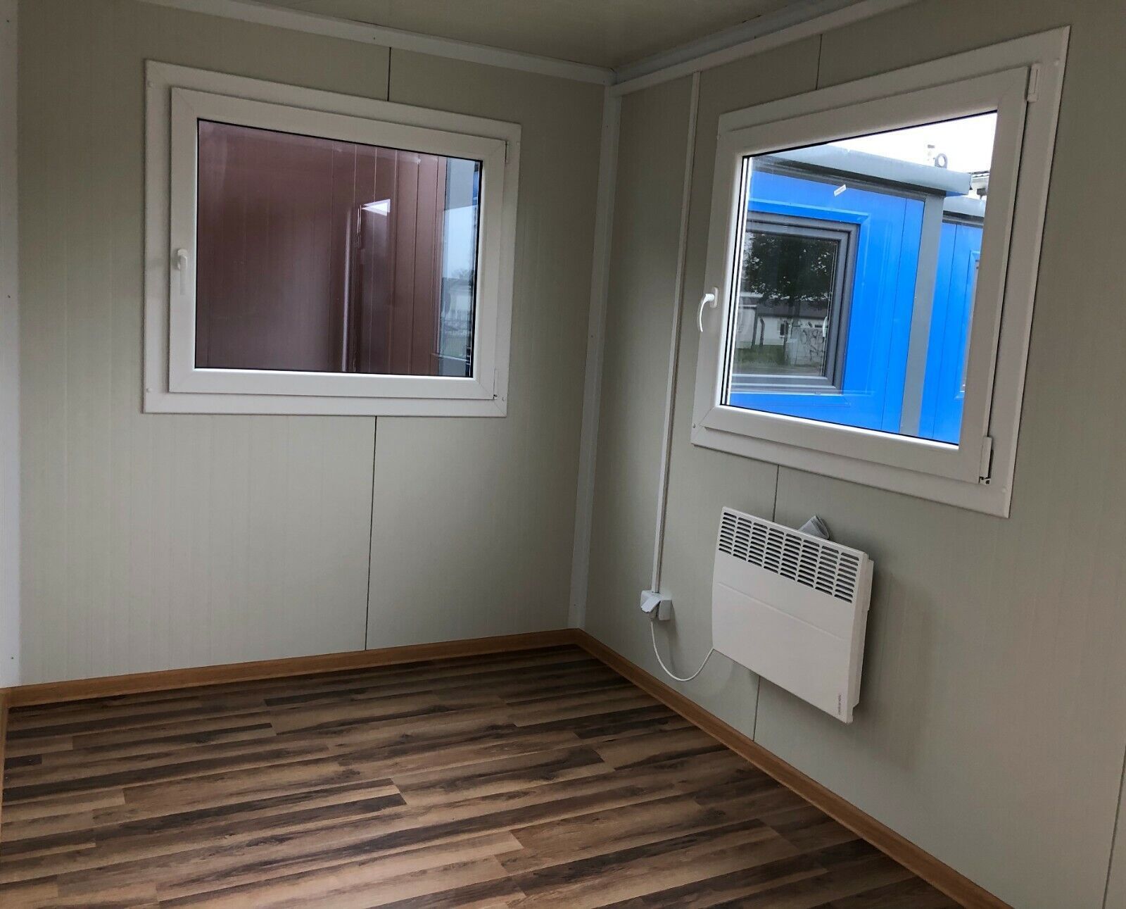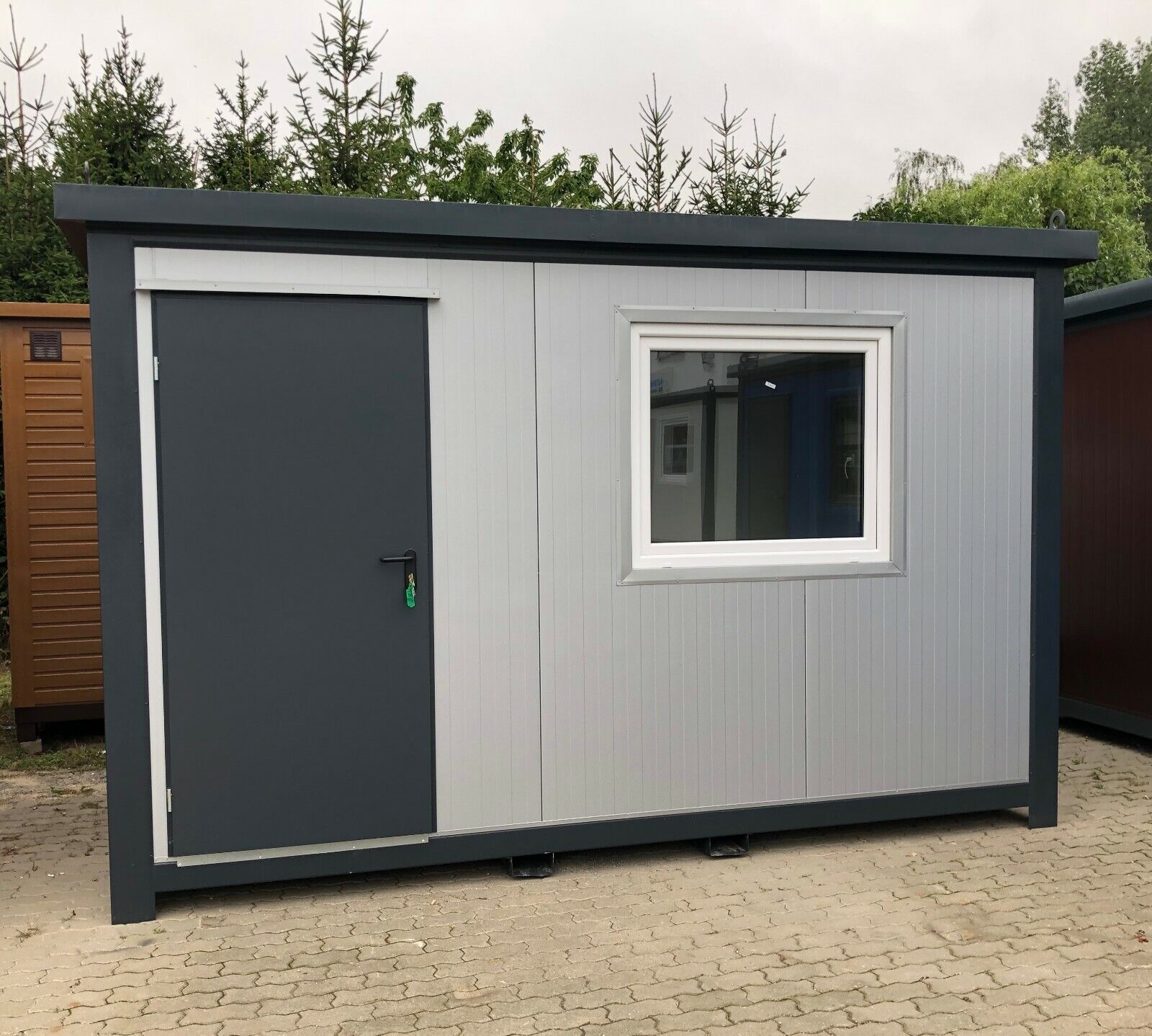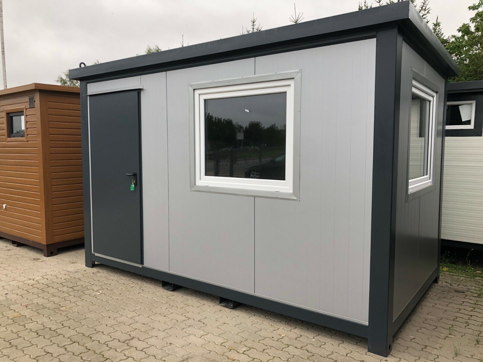 Bürocontainer 4x 2,20 Meter, 2,70 Meter hoch. -Wände u. Dach ISO- Sandwichelemente - 2 Fenster Dreh Kipp (Doppelverglasung) - Wärmegedämmtes Sandwichprofil für geringen Energieverlust - Hörmann Stahlblech Außentür - Komplette Elektroinstallation nach EG Richtlinien - Steckdosen 230V - 1 Deckenlampe