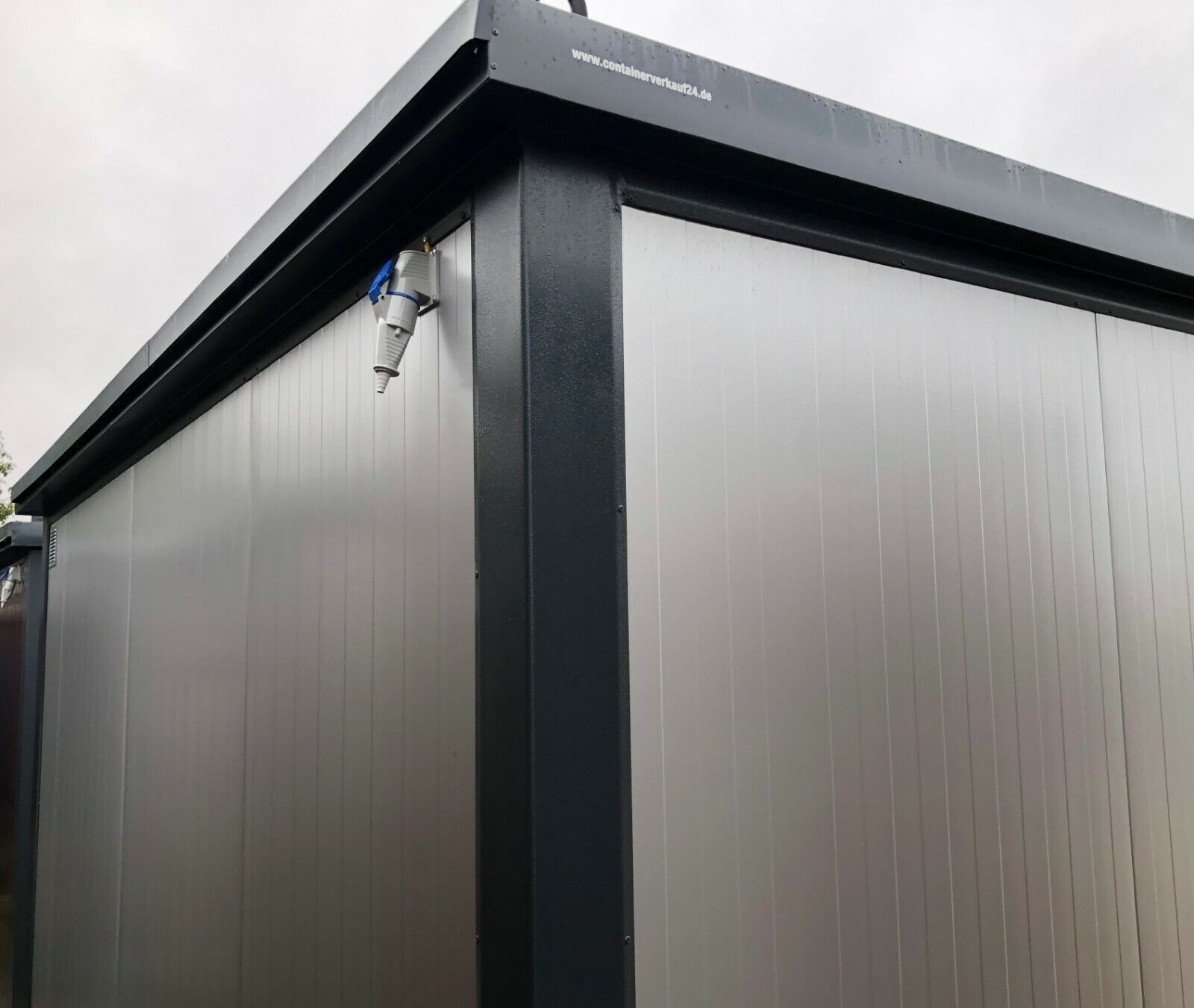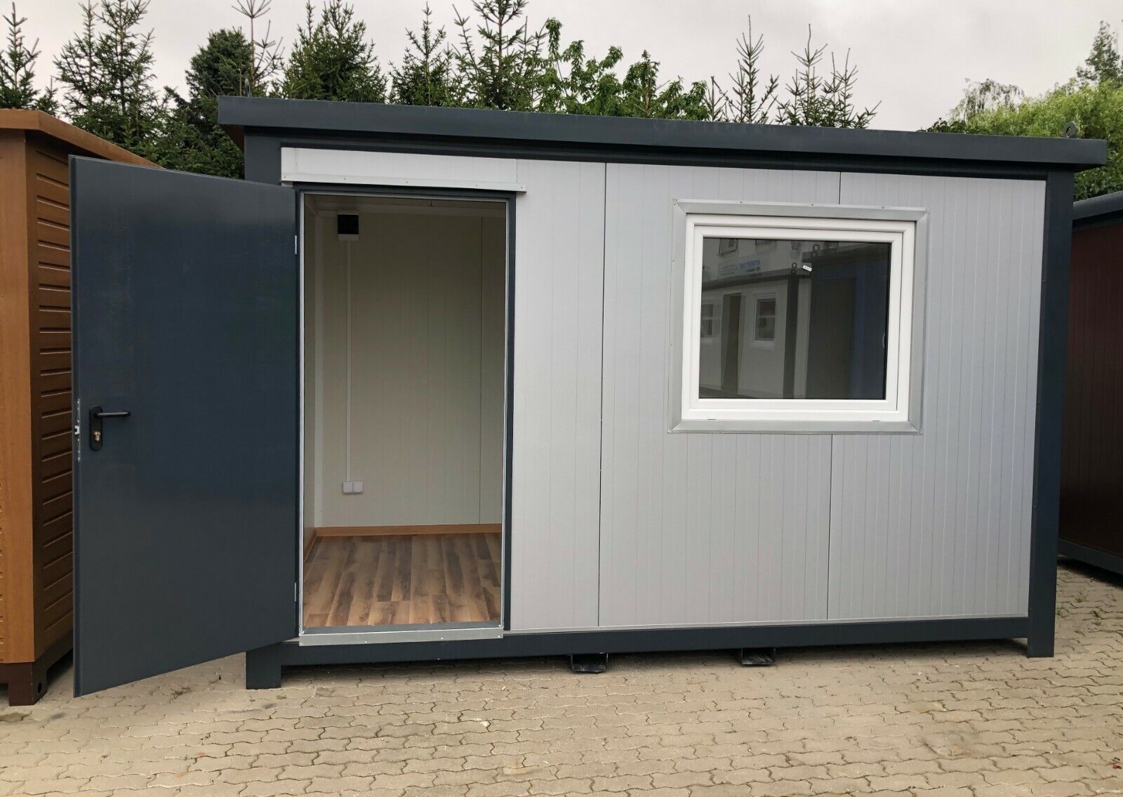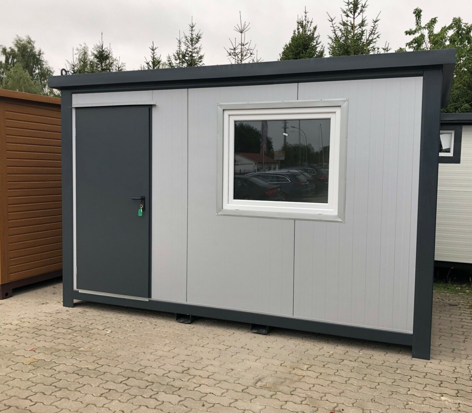 Bürocontainer 4x 2,20 Meter, 2,70 Meter hoch. -Wände u. Dach ISO- Sandwichelemente - 2 Fenster Dreh Kipp (Doppelverglasung) - Wärmegedämmtes Sandwichprofil für geringen Energieverlust - Hörmann Stahlblech Außentür - Komplette Elektroinstallation nach EG Richtlinien - Steckdosen 230V - 1 Deckenlampe