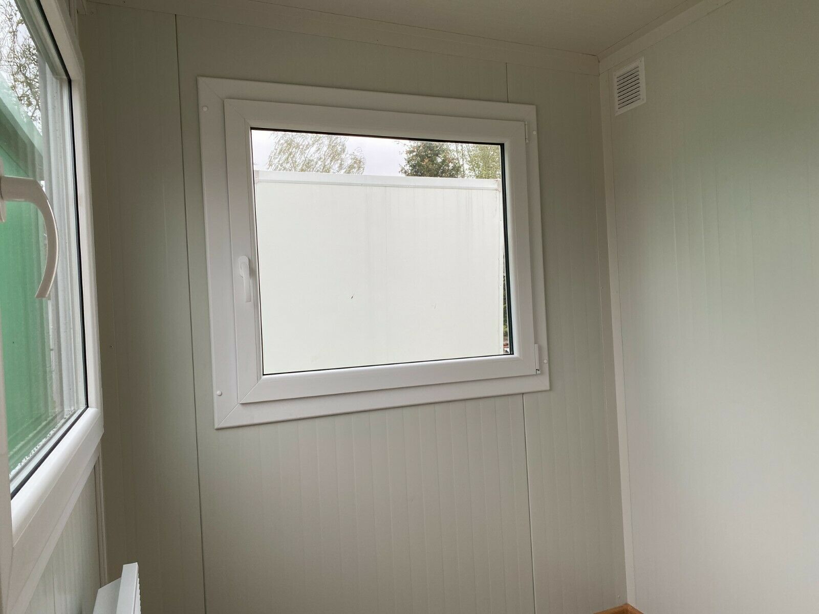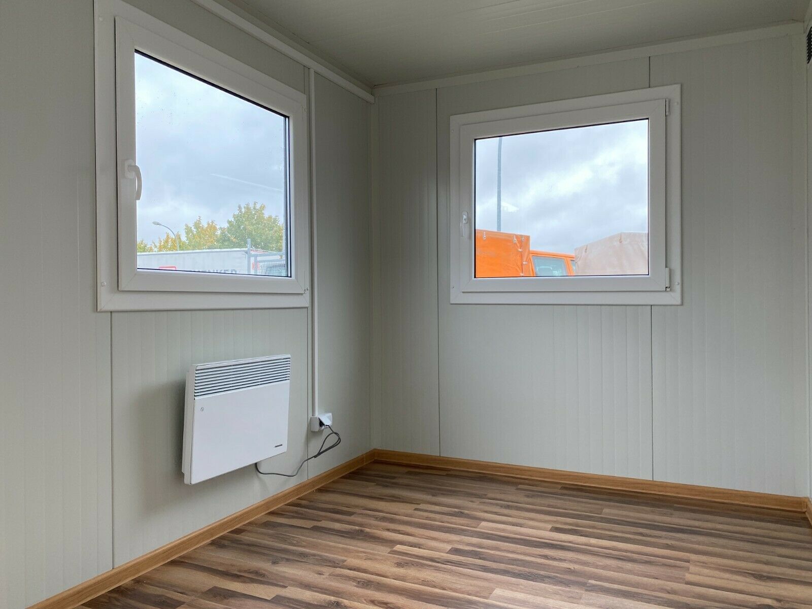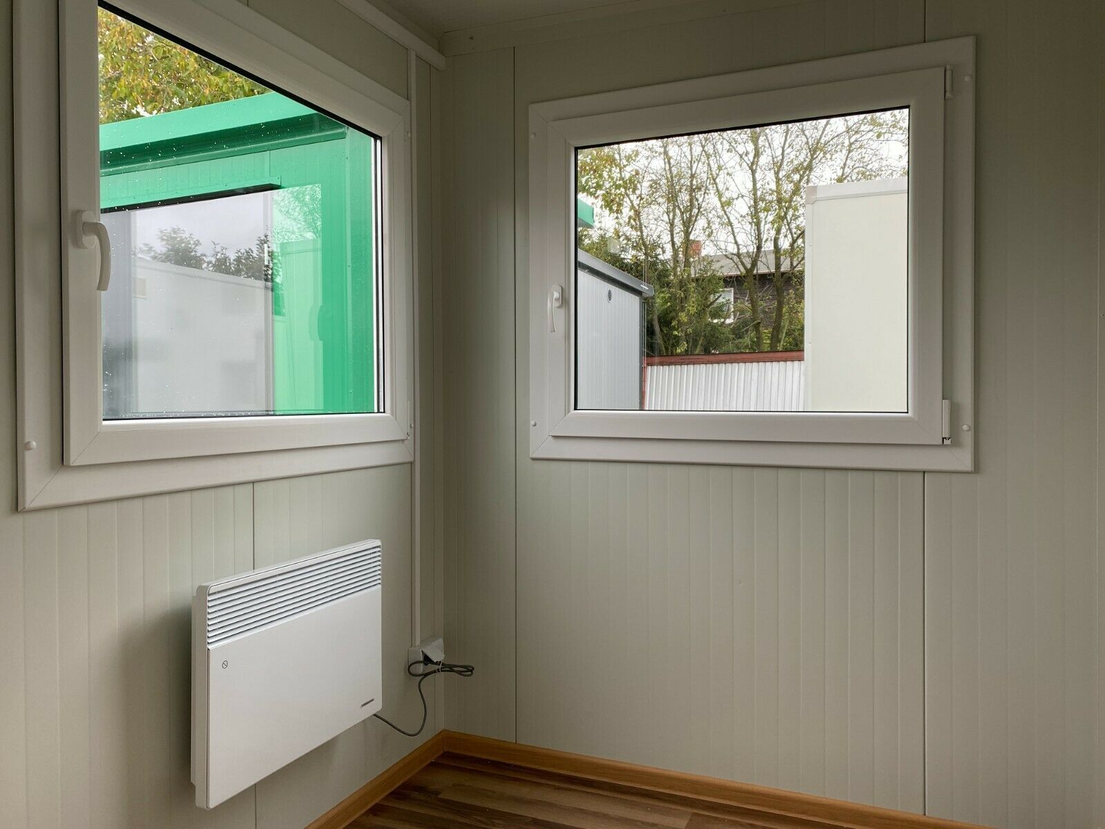 WC- Bürocontainer mit Toilette ´4,00 x 2,40 Meter, 2,70 Meter hoch. -Wände u. Dach Sandwichelemente 7,5cm Isolierung. - 2 Fenster Dreh Kipp (Doppelverglasung) - Wärmegedämmtes Sandwichprofil für geringen Energieverlust - Hörmann Stahlblech Außentür - Komplette Elektroinstallation nach EG Richtlinien
