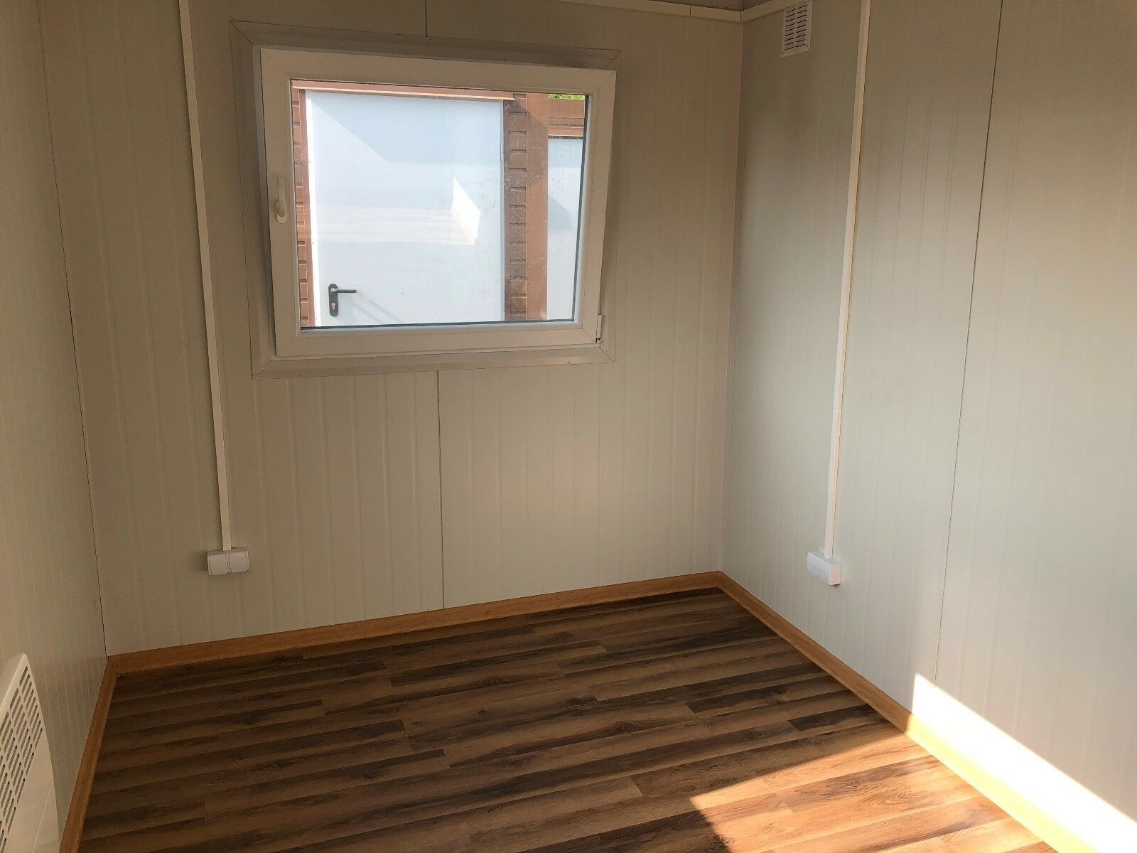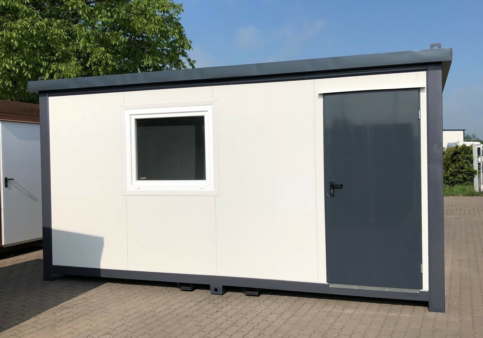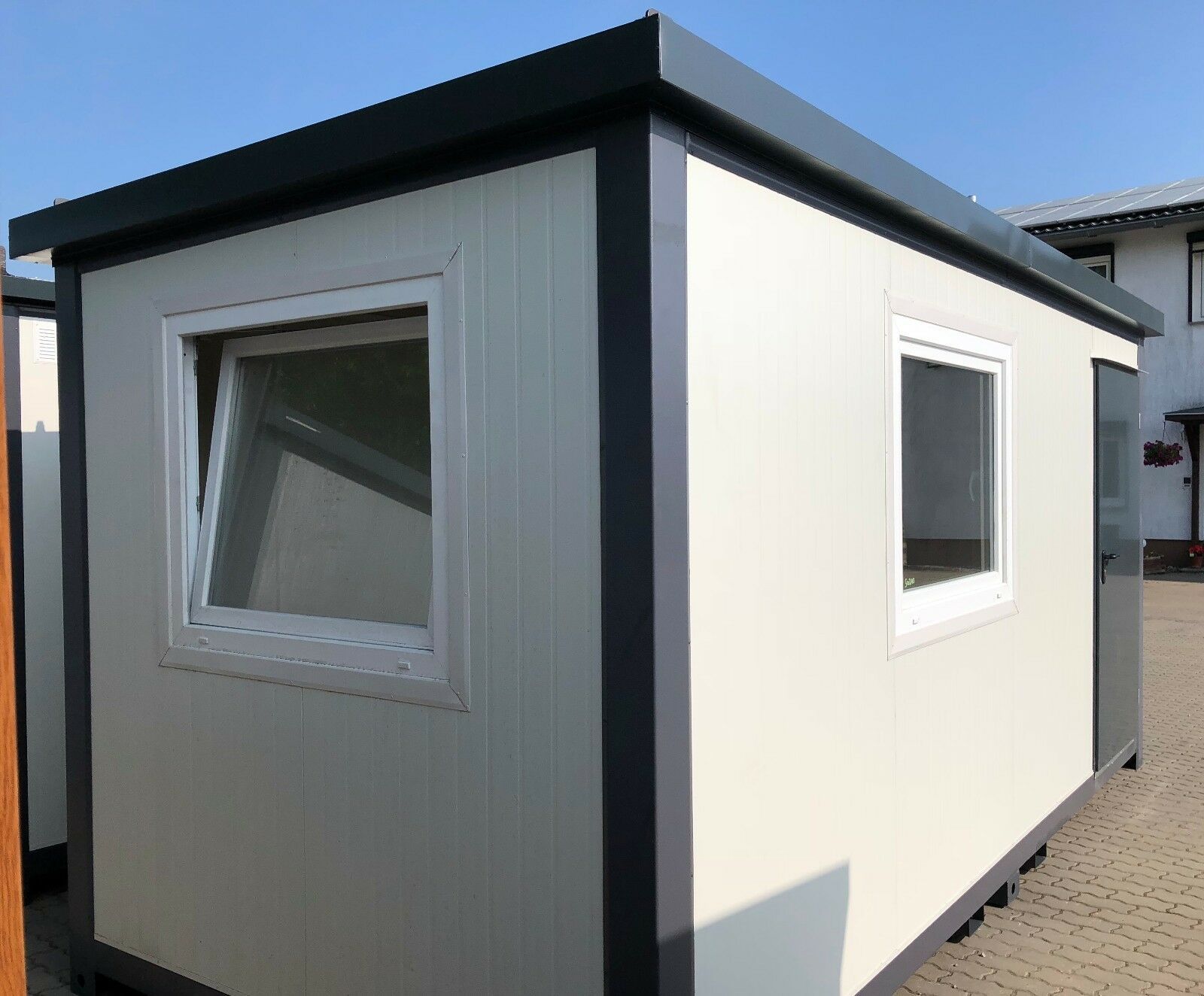 Bürocontainer Wohncontainer Gartenhaus Maße: 5 x 2,40 Meter, 2,70 Meter hoch - 2 Fenster - Wände u. Dach Sandwichelemente 7,5 cm Isolierung. - 2 Fenster Dreh Kipp (Doppelverglasung) - Wärmegedämmtes Sandwichprofil für geringen Energieverlust - Eingangstür mit Wärmedämmung (Doppelverglasung) - Komple