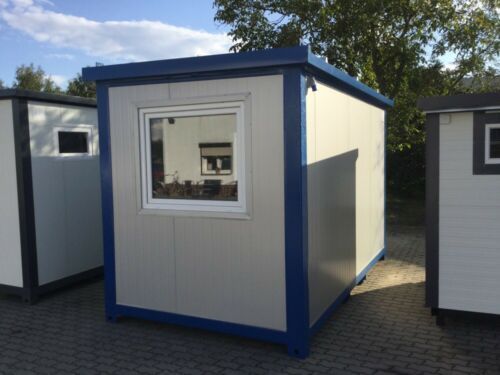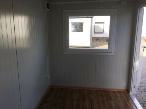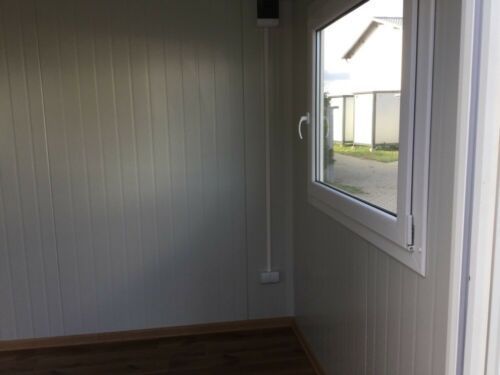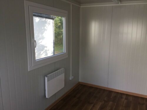 Neuer Bürocontainer 3,50x2,20 Meter, 2,70 Meter hoch. - Wände u. Dach Sandwichelemente 7,5 cm Isolierung. - 2 Fenster Dreh Kipp (Doppelverglasung) - Wärmegedämmtes Sandwichprofil für geringen Energieverlust - Hörmann Stahlblech Außentür - Komplette Elektroinstallation nach EG Richtlinien - Steckdose