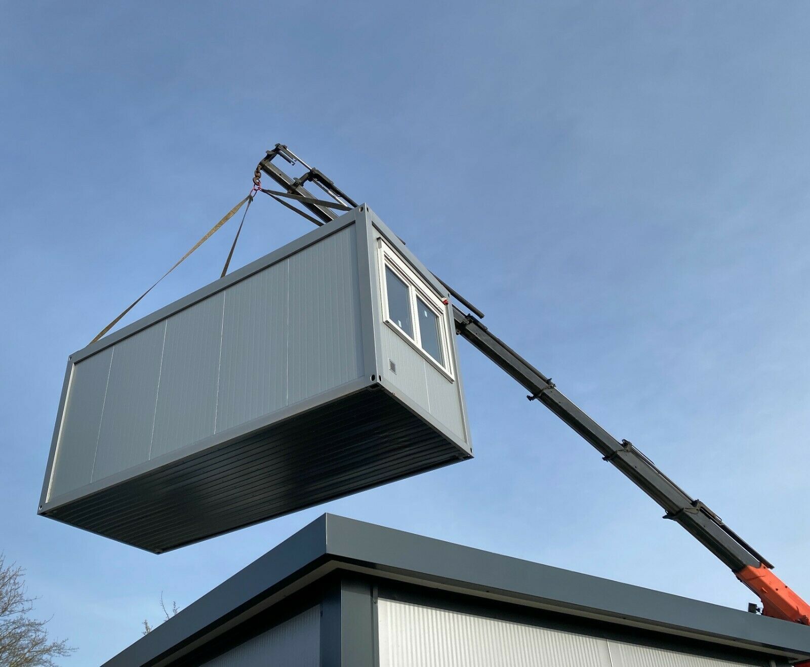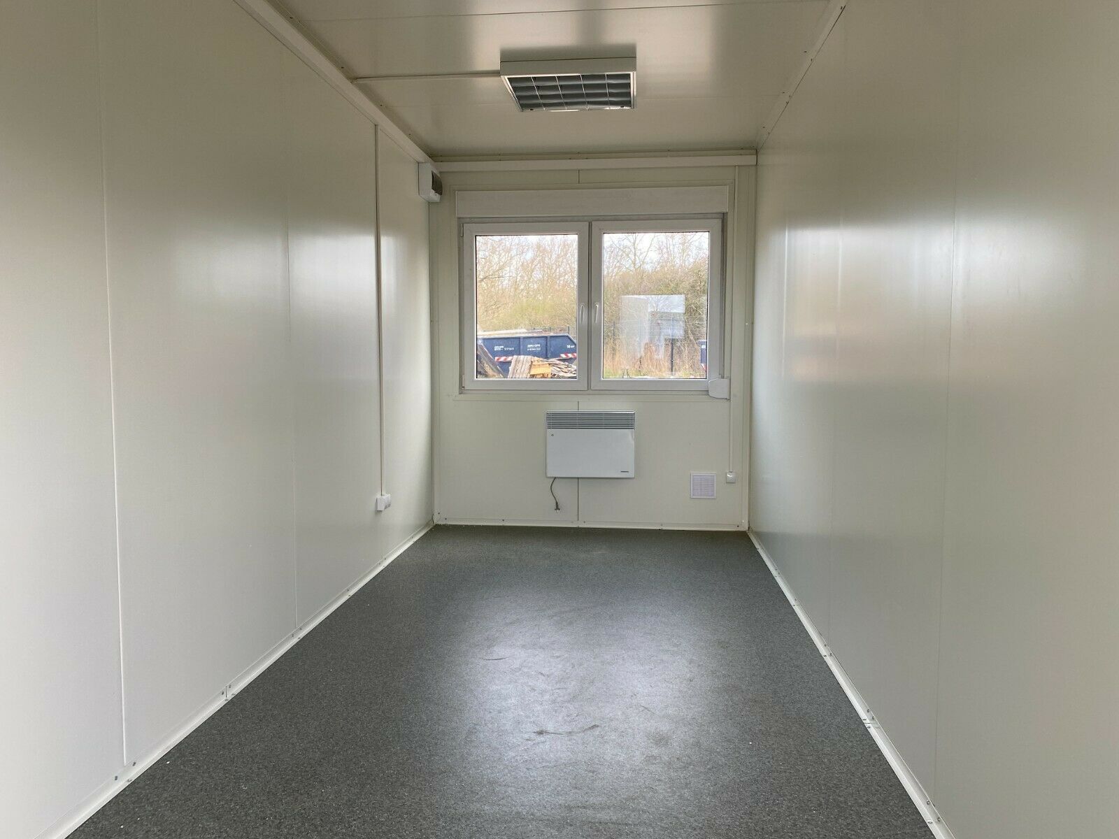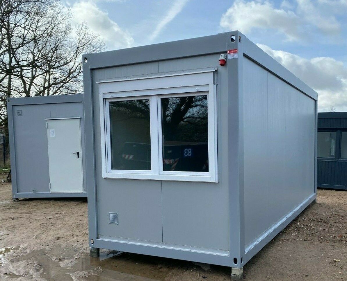 Bürocontainer Meter 6x2,43 Meter, 2,80 Meter hoch - 2 Fenster - Wände u. Dach Sandwichelemente 7,5 cm Isolierung. - 2 Fenster Dreh Kipp (Doppelverglasung) mit Rollladen - Wärmegedämmtes Sandwichprofil für geringen Energieverlust - Komplette Elektroinstallation nach EG Richtlinien - Steckdosen 230V -